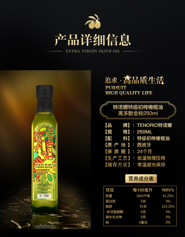 特诺娜西班牙原装进口特级初榨橄榄油250ml*2 军绿色