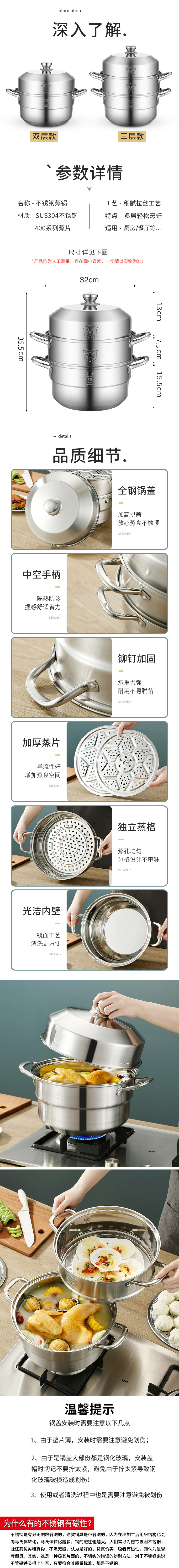 拜格(BAYCO)不锈钢蒸锅32cm BG1395 不锈钢色