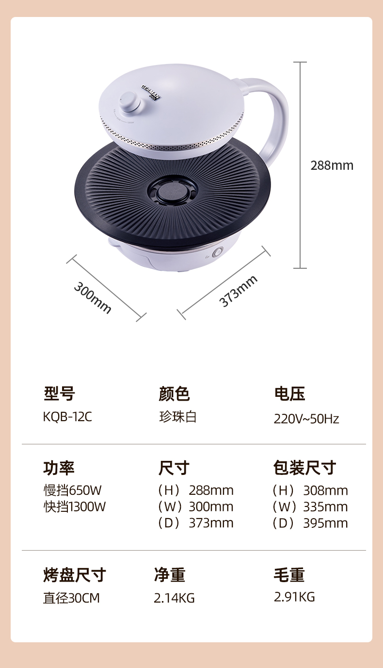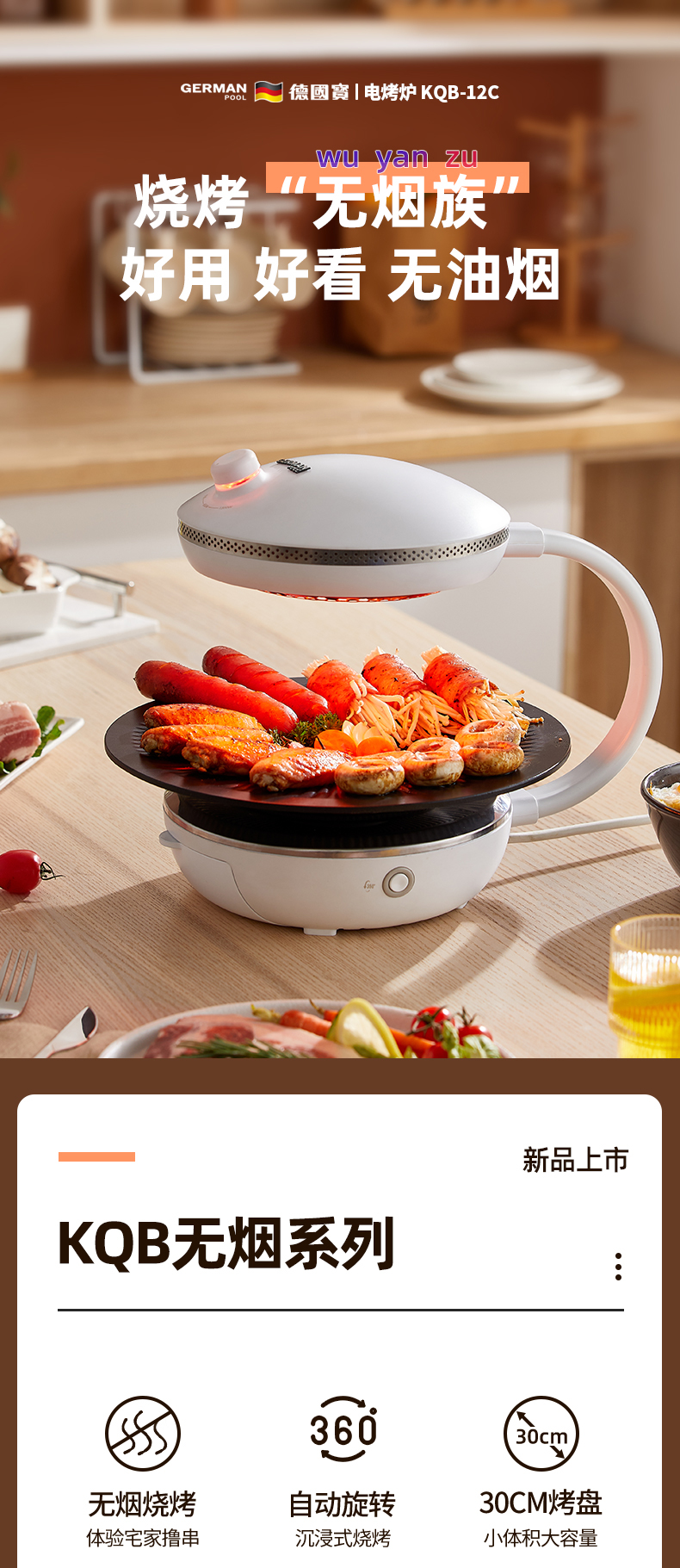 德国宝(GERMAN POOL)电烧烤炉KQB-12C 迷你版适合1-3人(单位:台) 白色