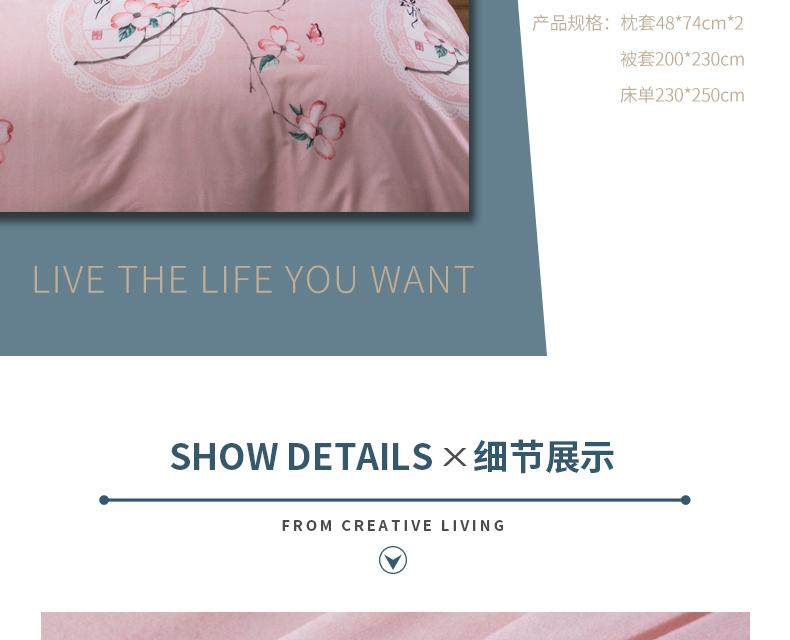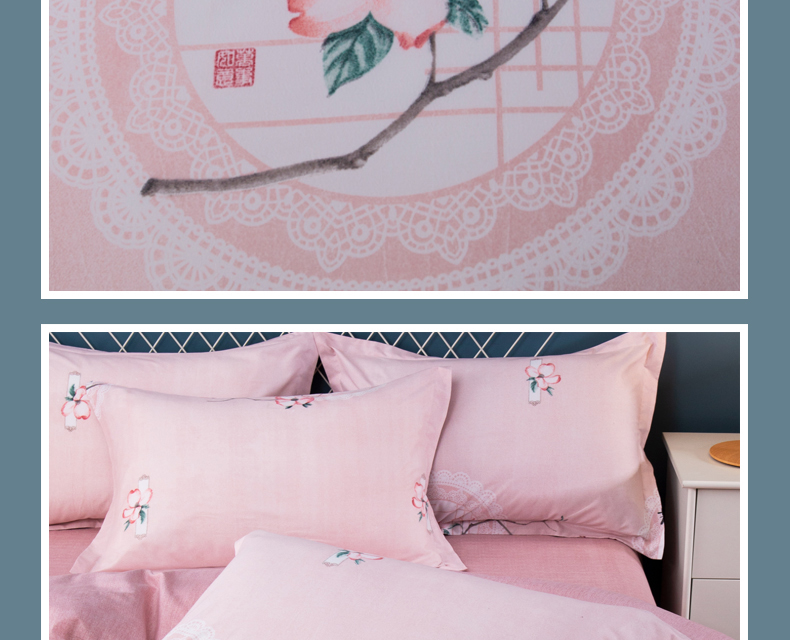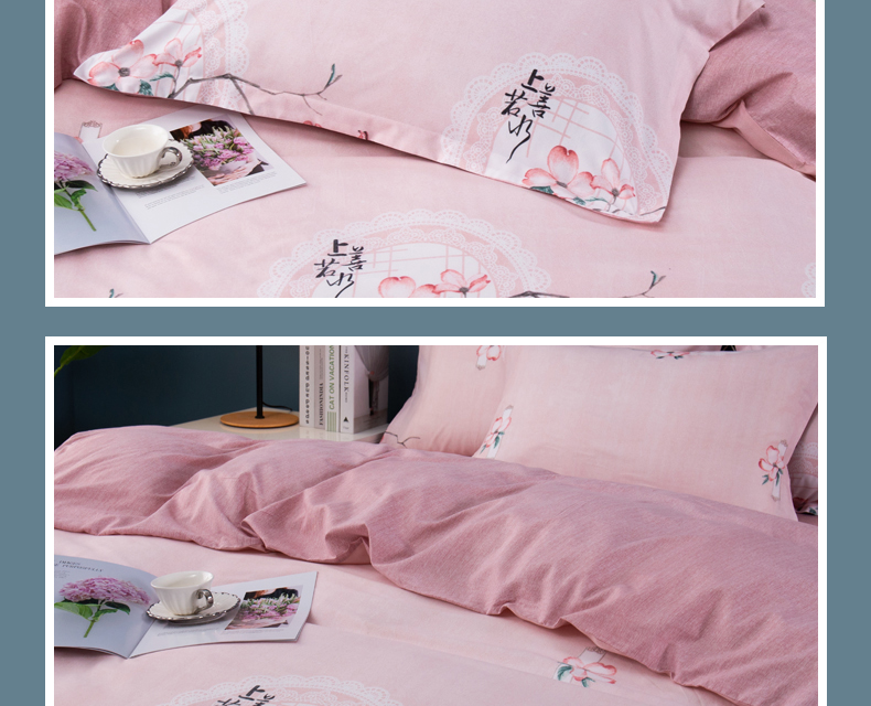 恒源祥 兰色星语/上善若水 水洗棉四件套 200*230cm TBK2016 单位:套 粉色