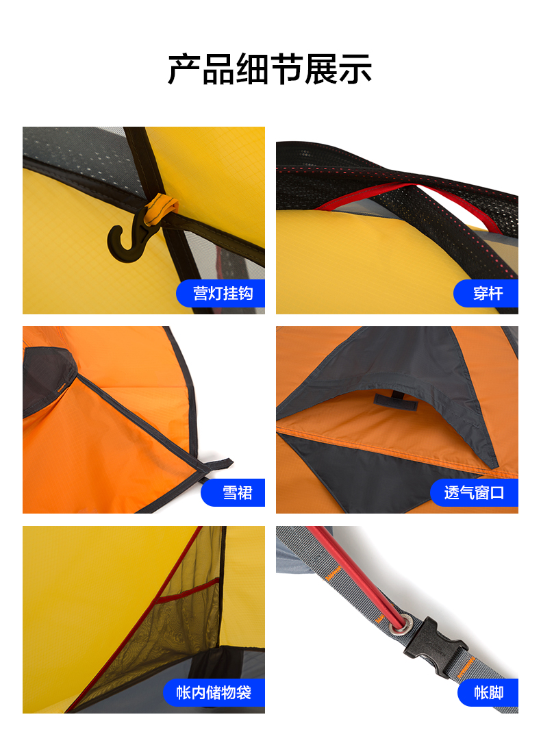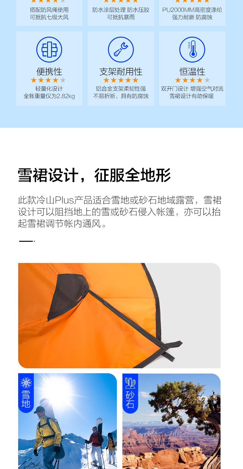 牧高笛 带雪裙高山沙漠雪线四季防风防雨三人铝杆帐篷 冷山3plus NXZQU61018 红灰色 红灰色