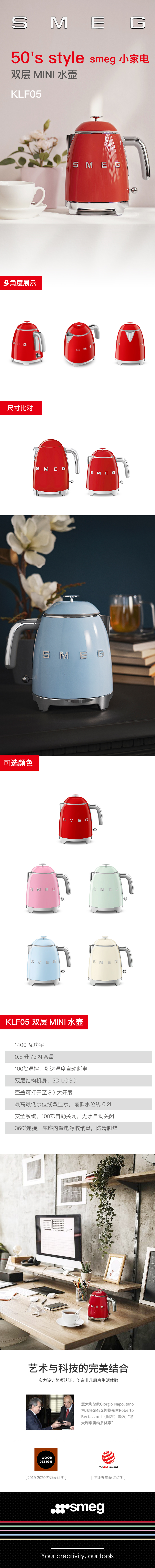 SMEG斯麦格 KLF05不锈钢迷你防烫小容量送礼便携电水壶快速烧水壶(单位:台) 淡蓝色