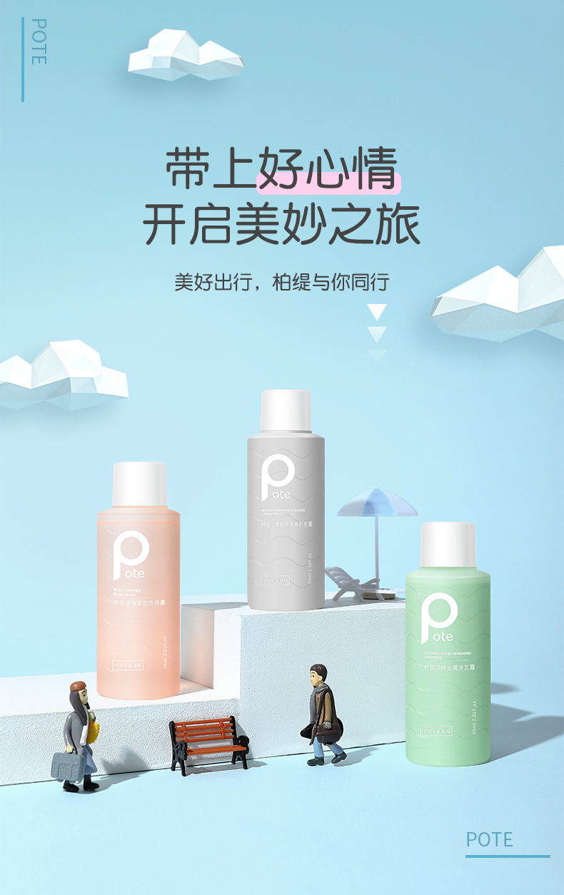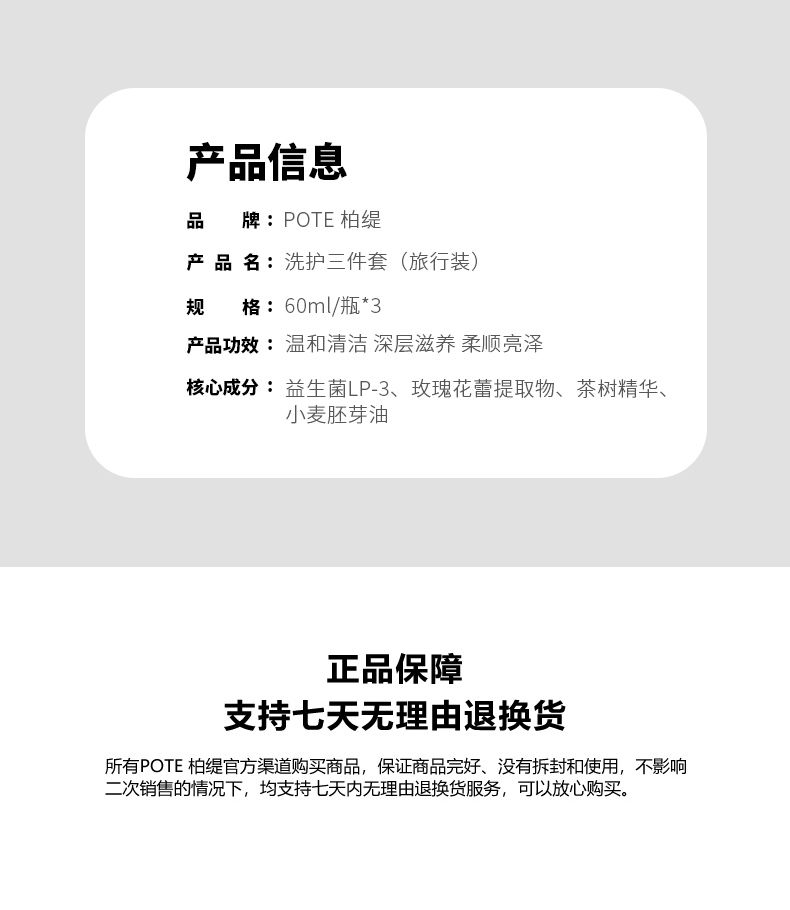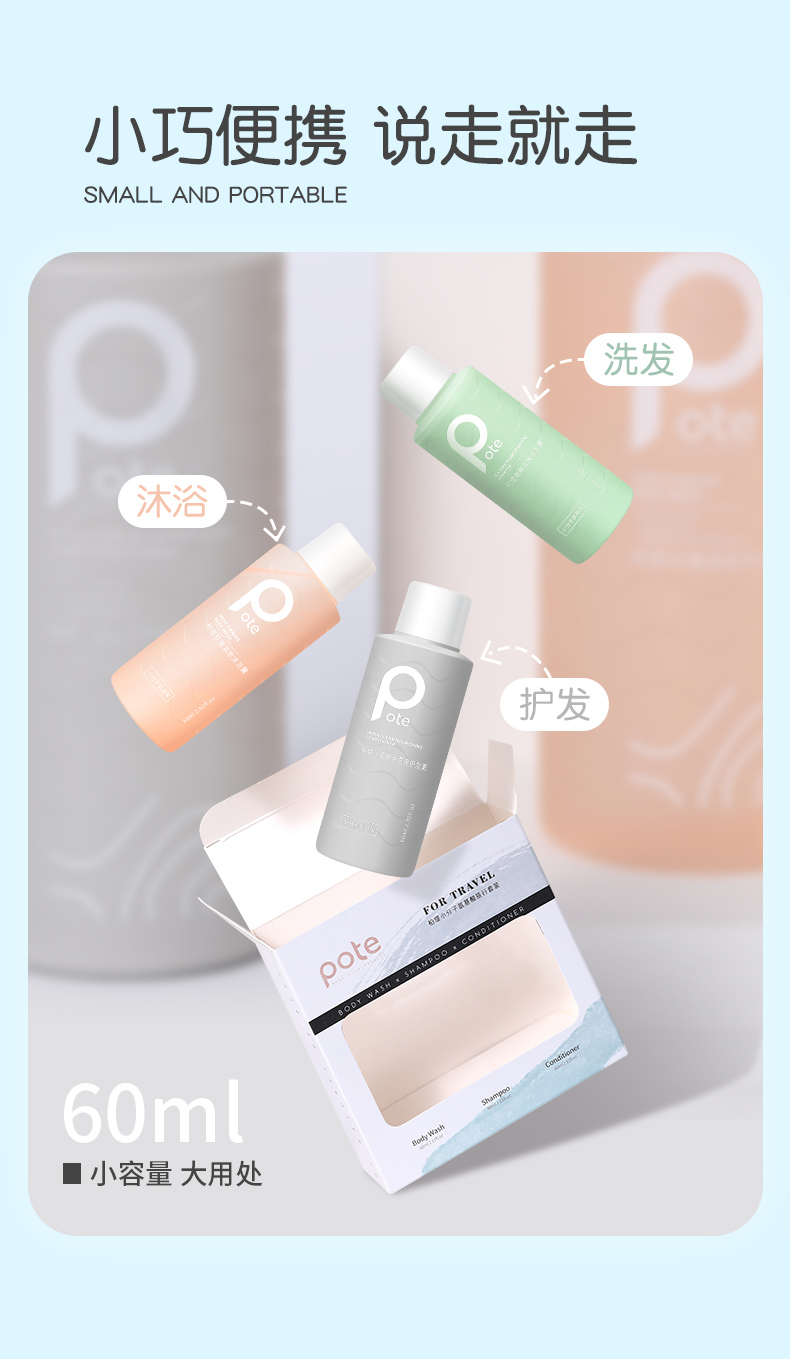 POTE柏缇 小分子氨基酸洗沐护套装60ml*3洗护旅行套洗发水沐浴露装便携留香单位:组 混色