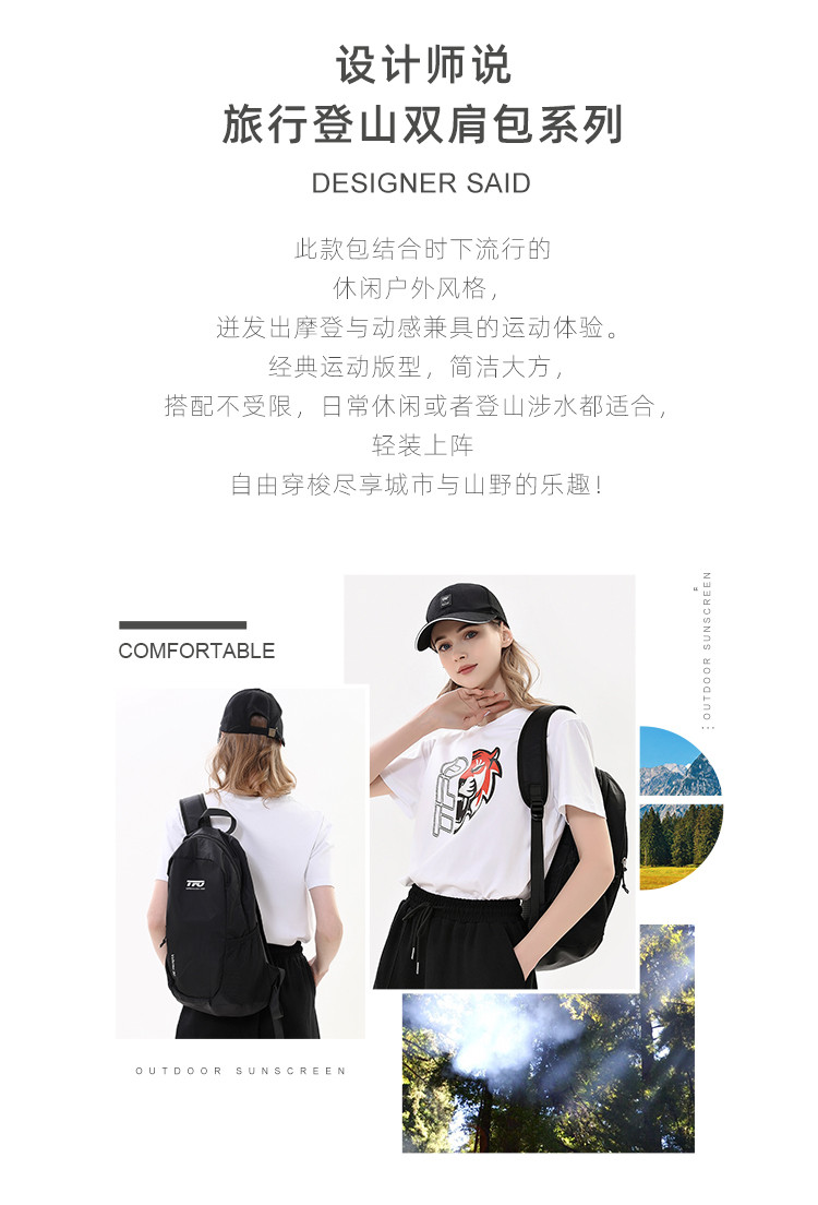 TFO户外旅行休闲超轻20L双肩背包9202120F00 黑色