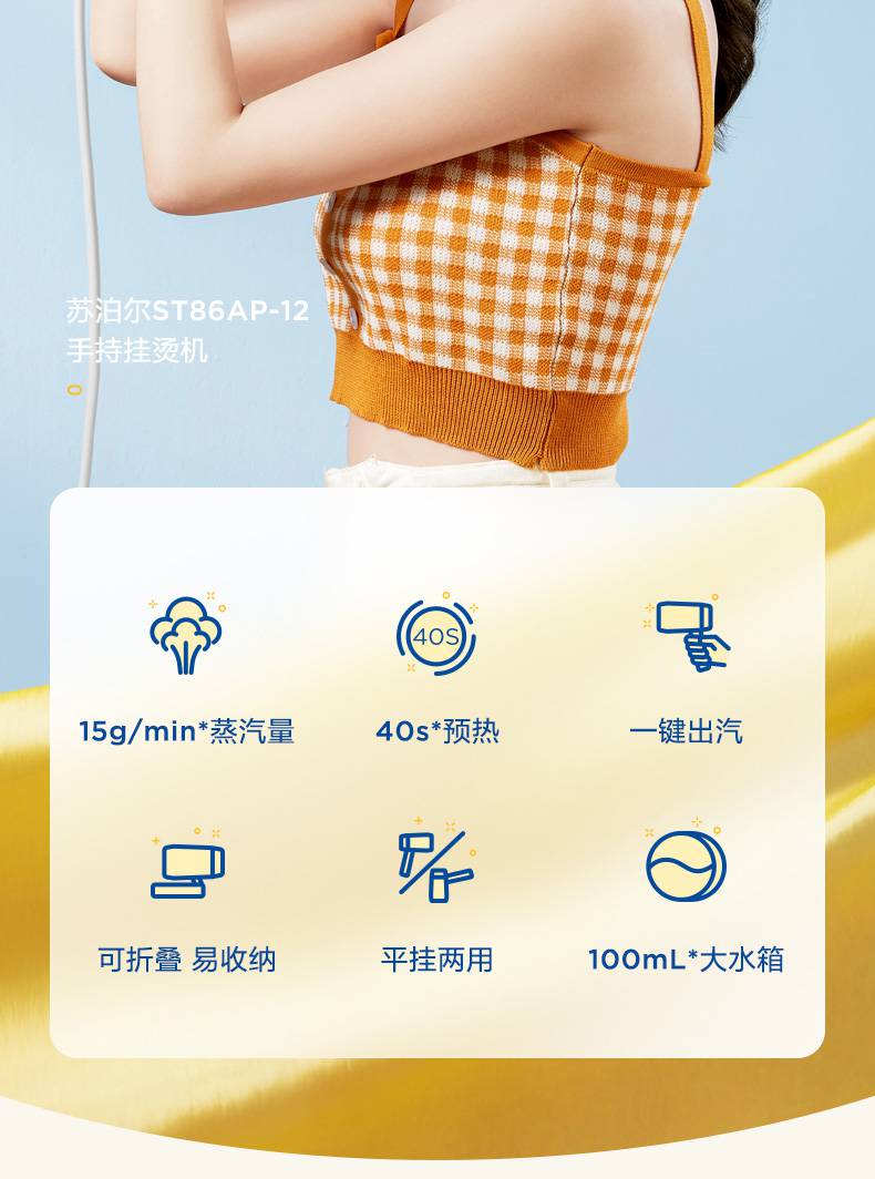 苏泊尔 (SUPOR )手持挂烫机100ml迷你家用小型蒸汽熨斗大功率可折叠 ST86AP-12(单位:台) 暖白色