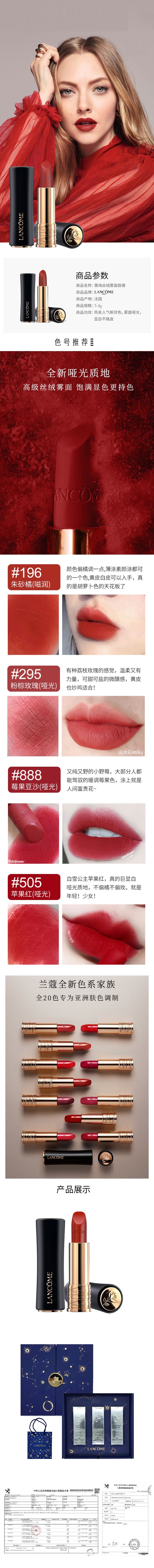 【礼盒装】兰蔻 口红3件套盒A款(小蛮腰) 黑管196+295+505