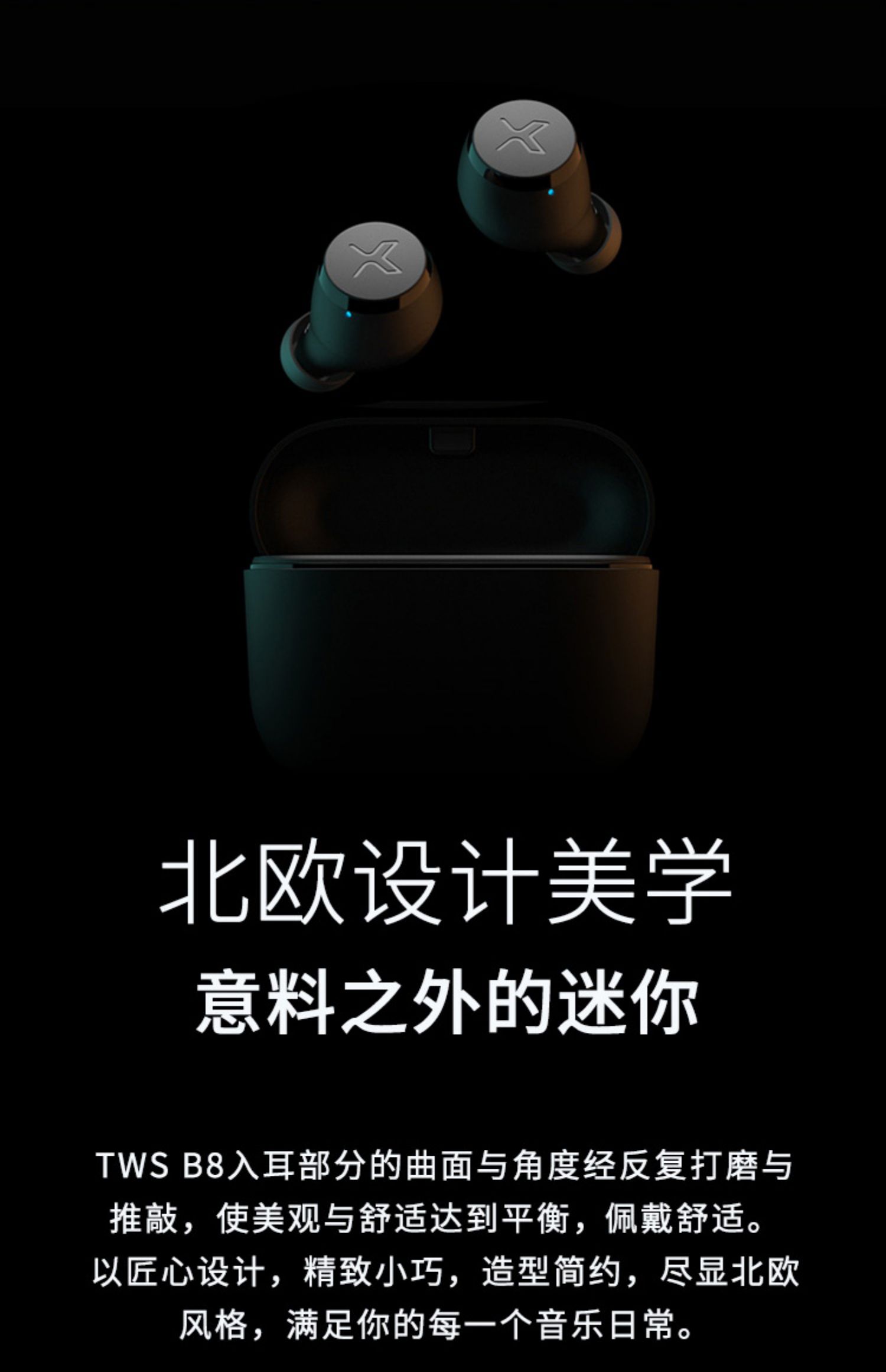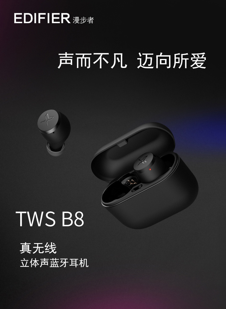 EDIFIER/漫步者 TWS B8真无线立体声无线蓝牙耳机入耳式双耳耳塞 黑色