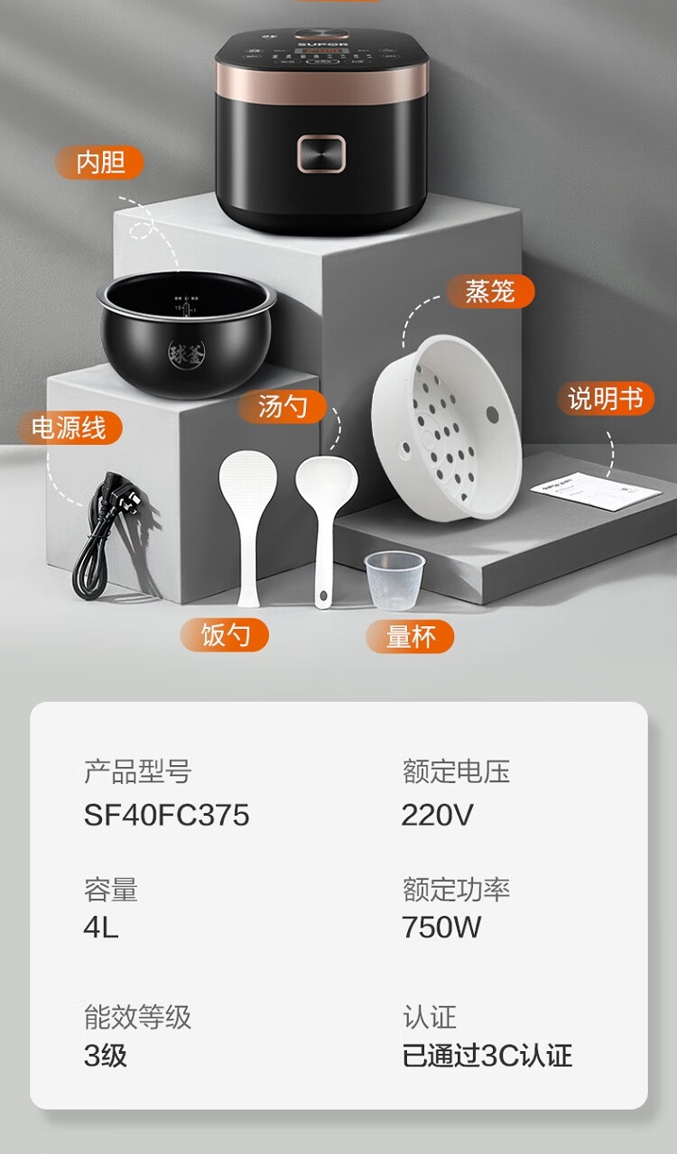 苏泊尔(SUPOR)ZMD安心系列 4L电饭煲SF40FC375 台 黑色