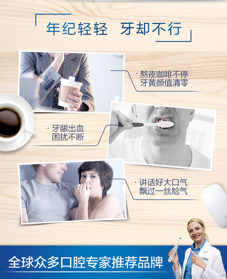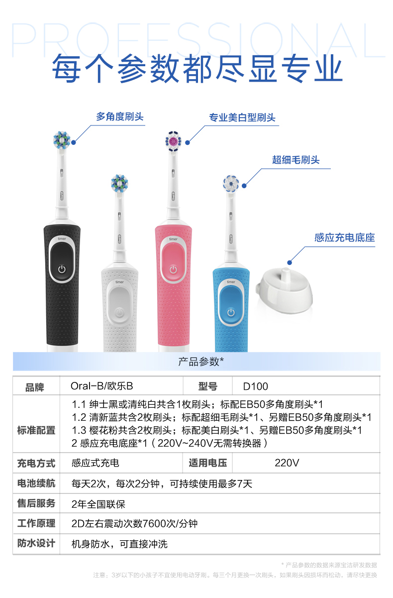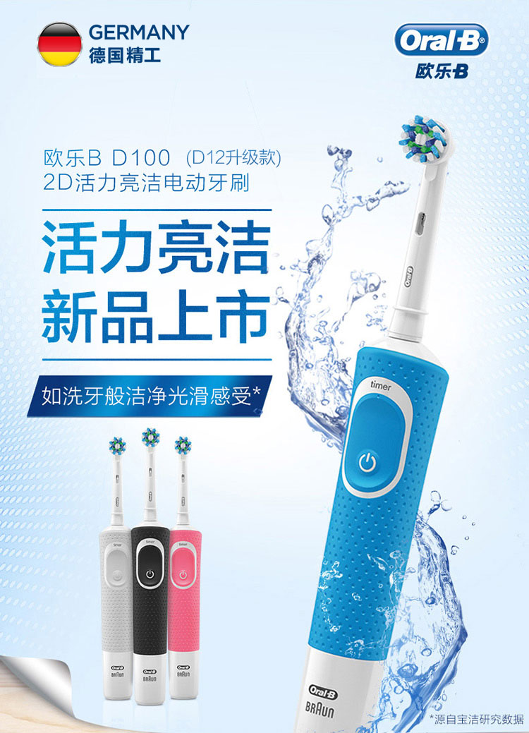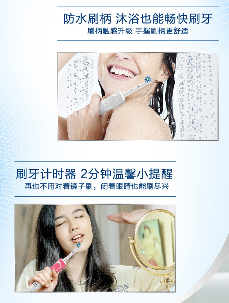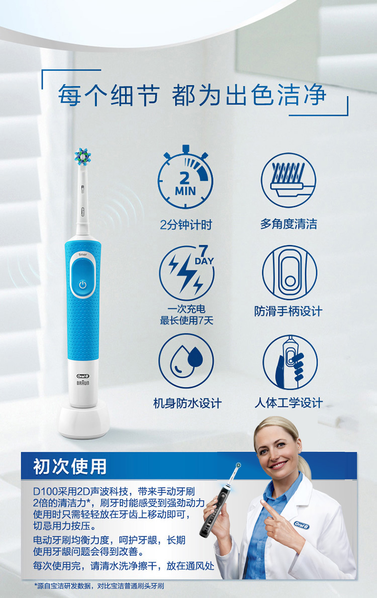 欧乐B 电动牙刷 (含刷头*2)清新蓝D100/个 水蓝色