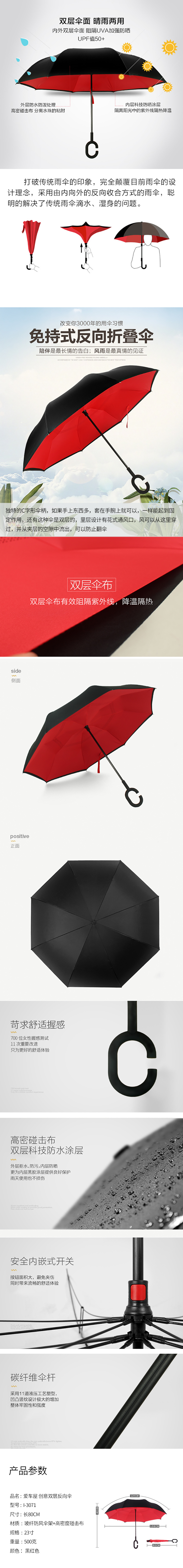 爱车屋创意双层晴雨反向伞I-3071 /23寸/玻纤防风伞架+高密度碰击布材质/把 红色
