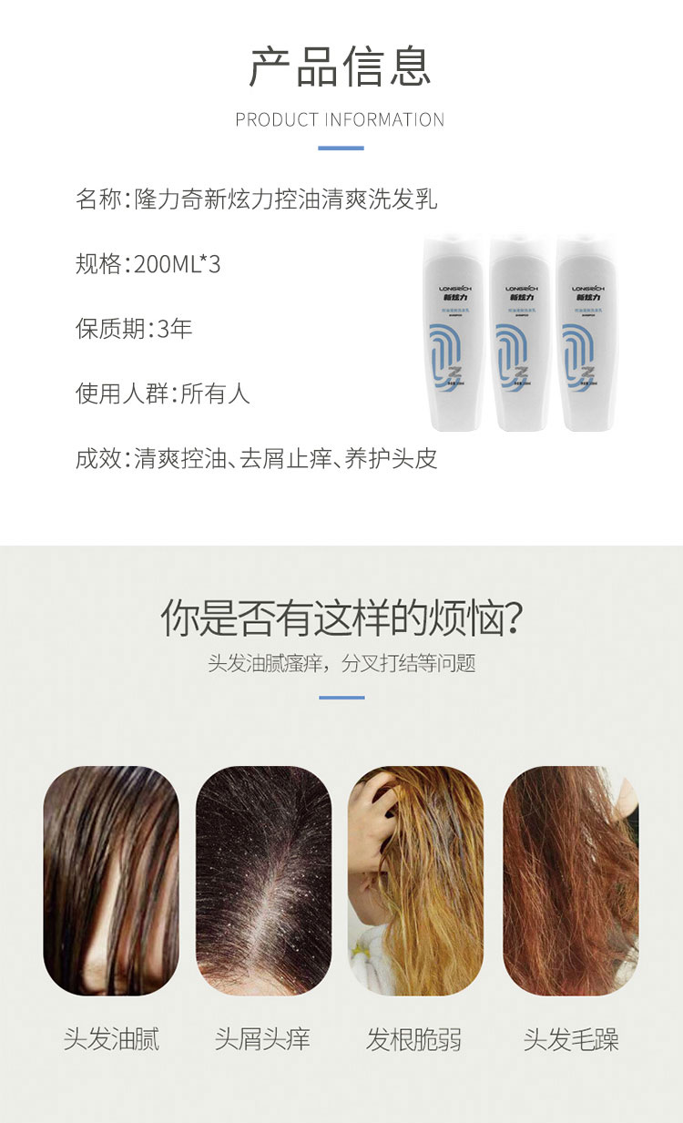 隆力奇控油清爽洗发水200ml*3瓶 白色 白色