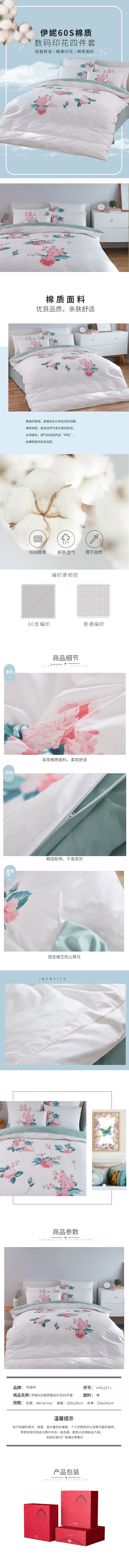 恒源祥伊妮60S全棉数码印花四件套HYX122TJ 白色 1.8米