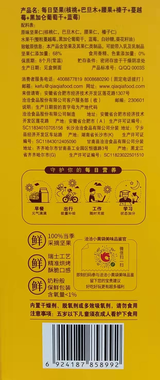 洽洽每日坚果15日装345g(内赠2瓶坚果乳)/盒 黄色