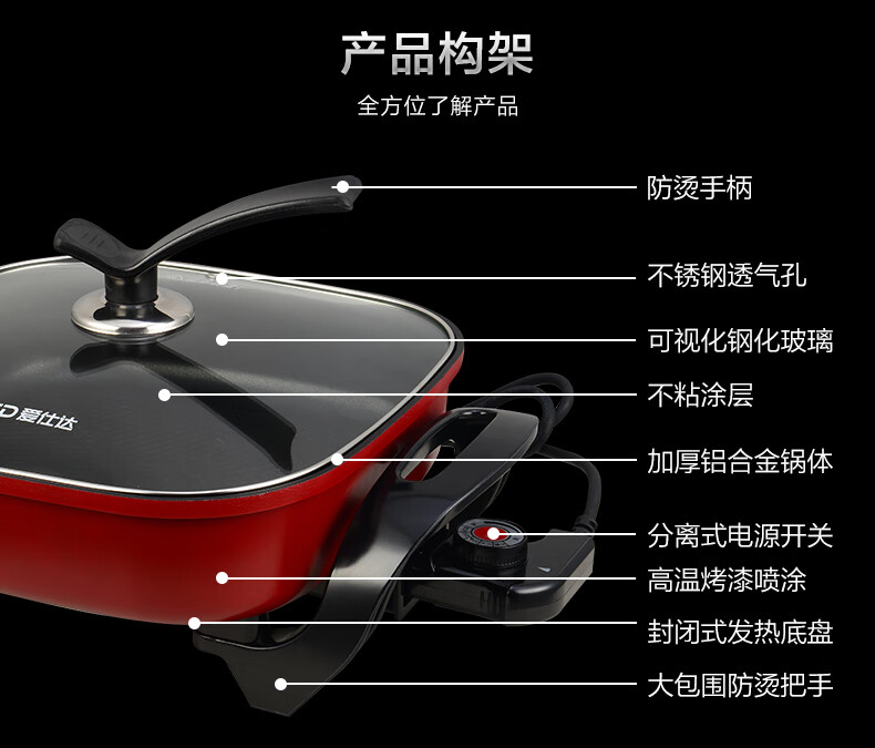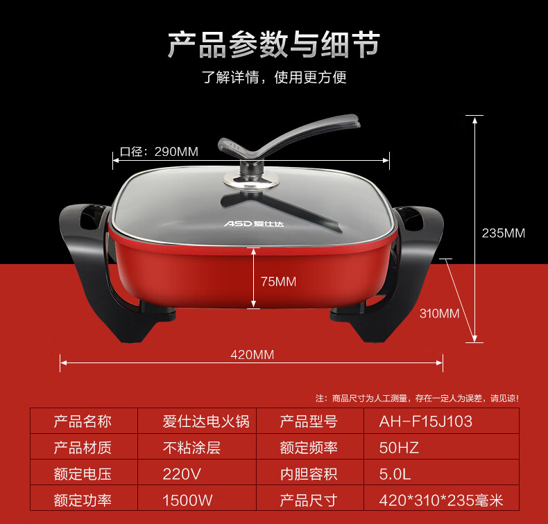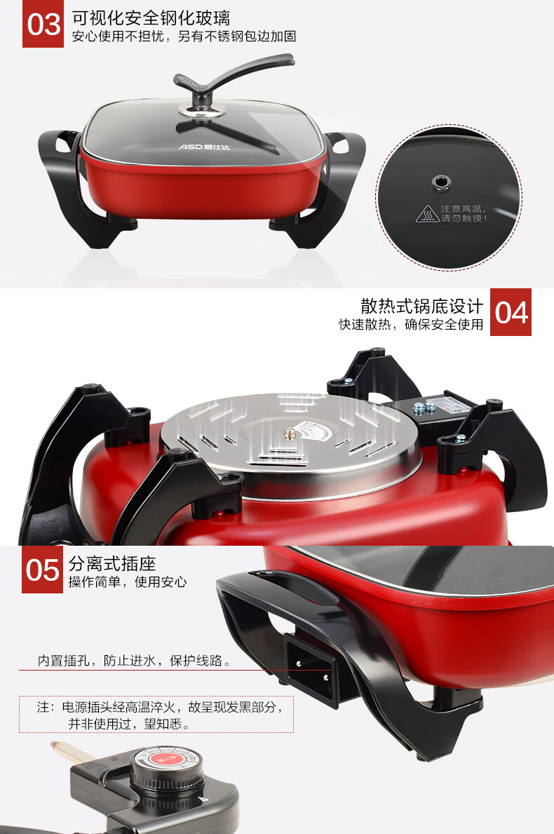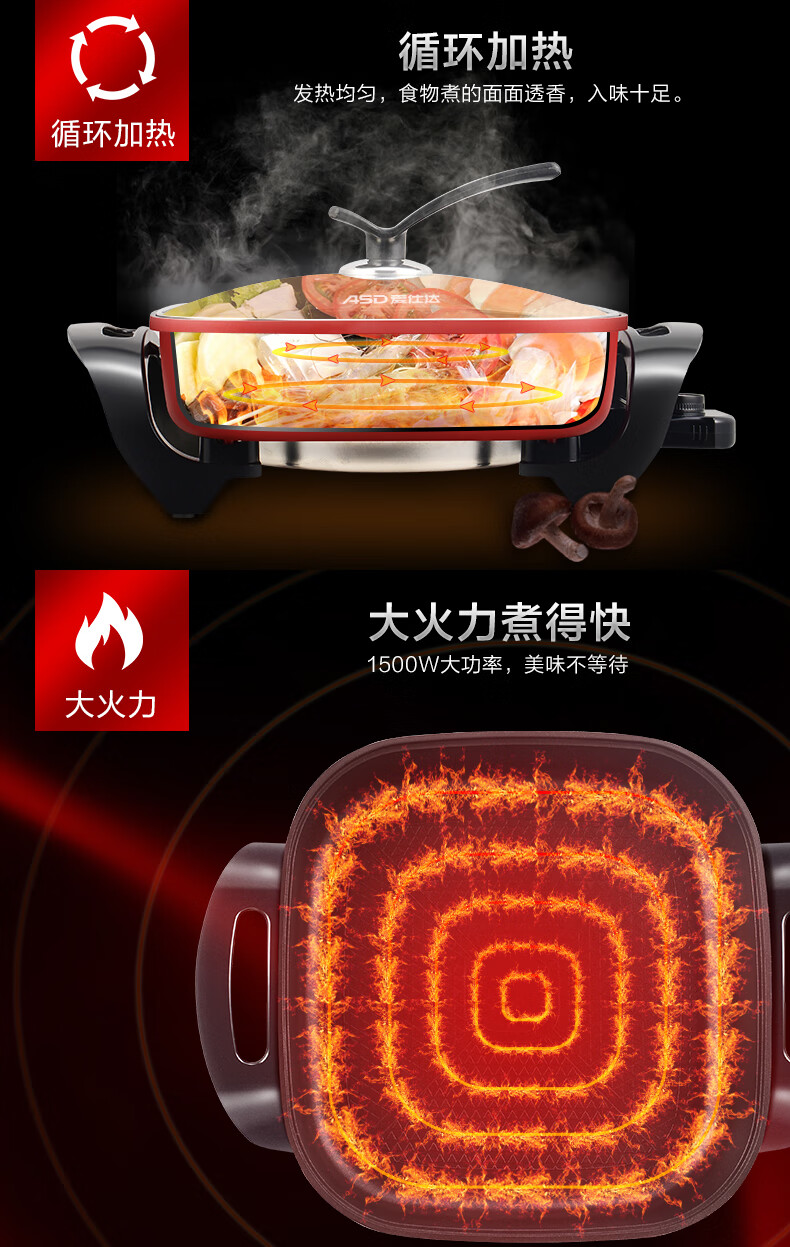 爱仕达(ASD)电火锅 AH-F15J103(单位:台) 红色