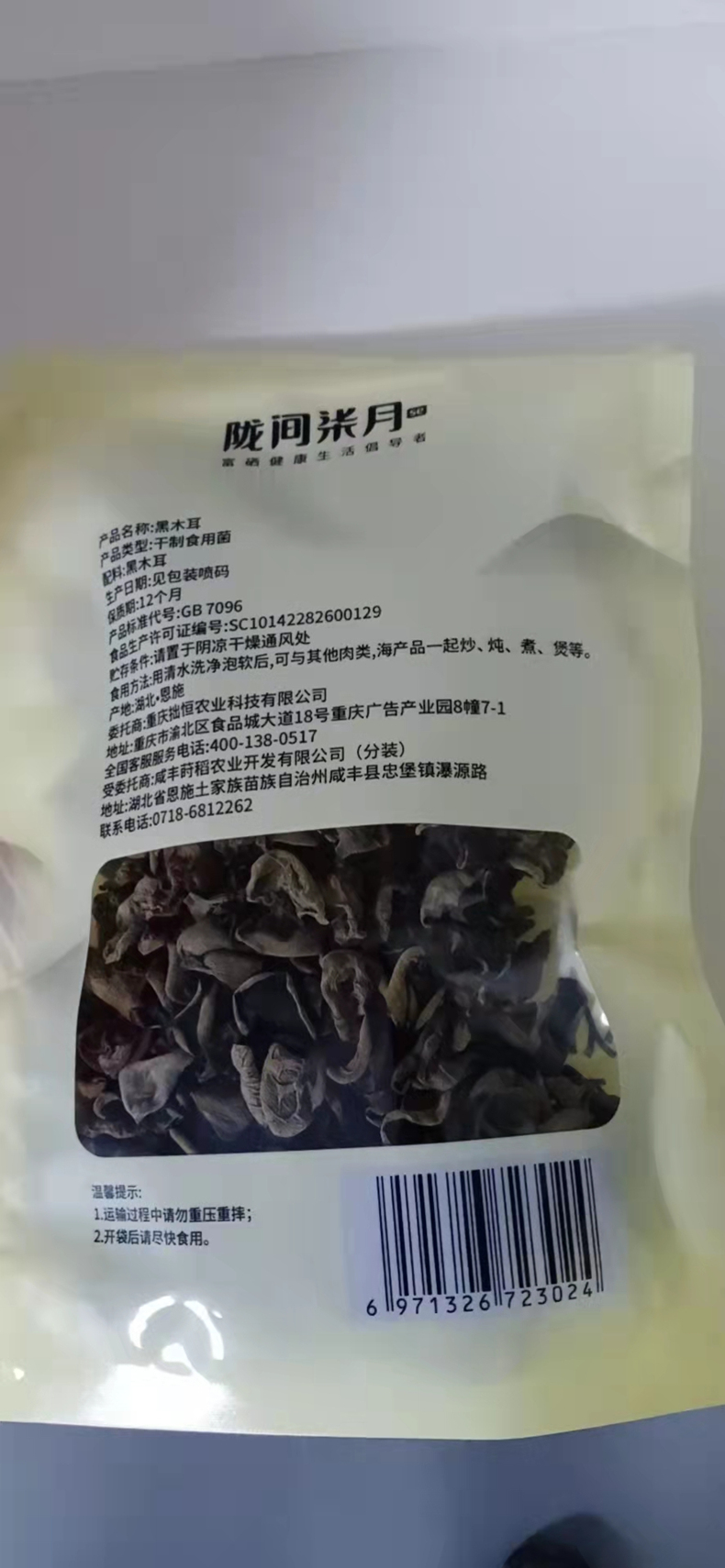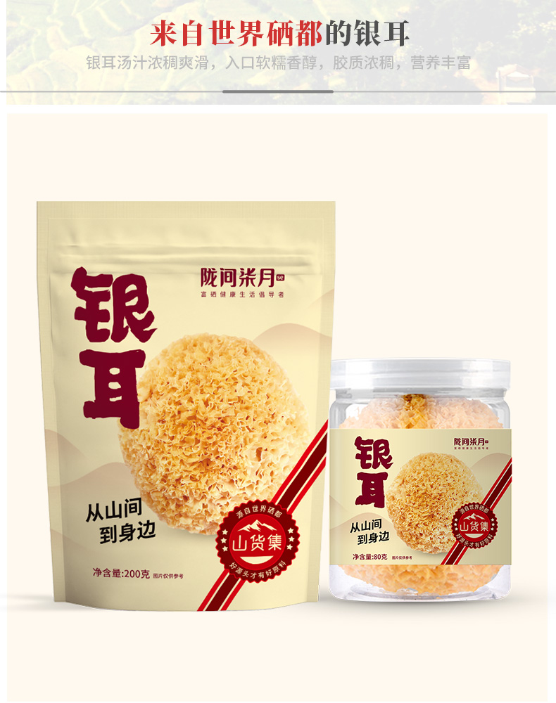 陇间柒月新品年货伴手礼员工福利 黑木耳(袋装150g) 黑色