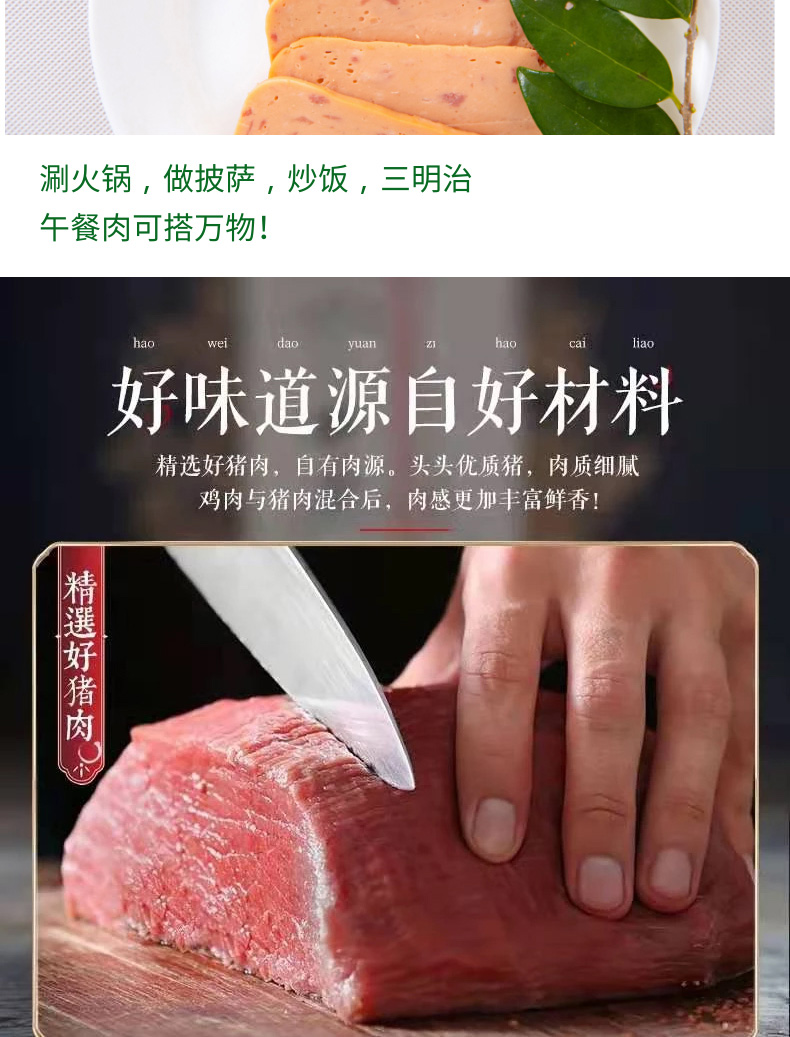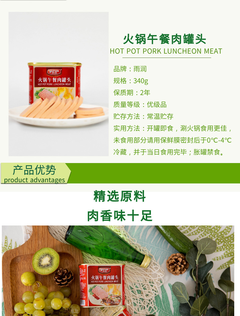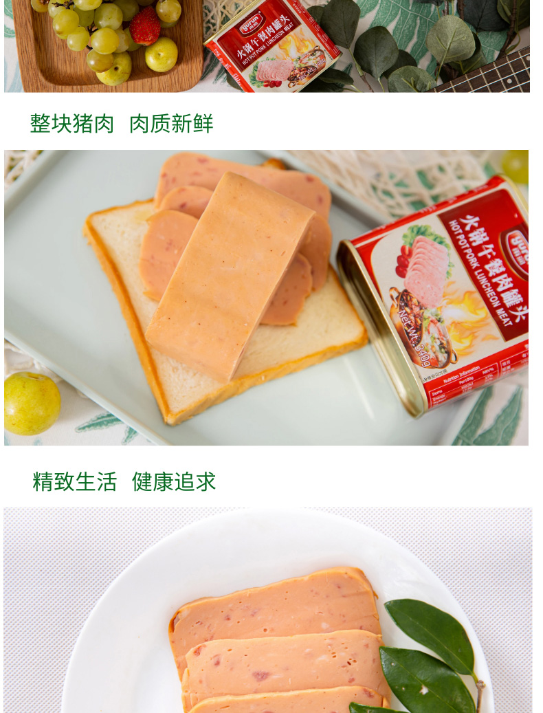 雨润精品火锅午餐肉罐头猪肉火腿火锅即食方便食品三明治切片340g*5罐