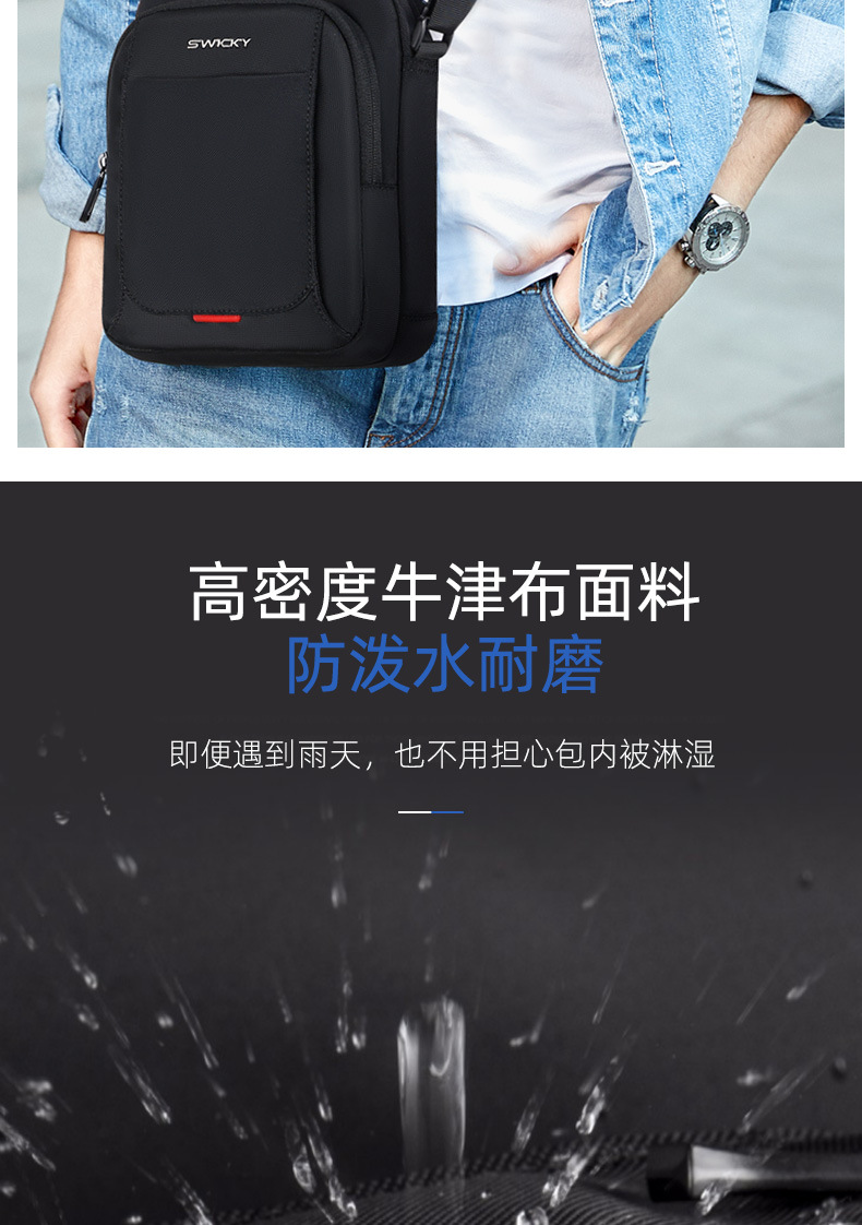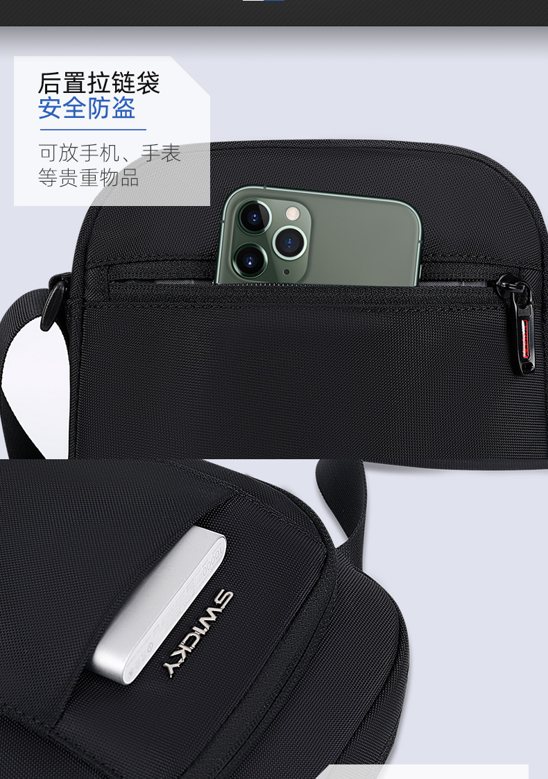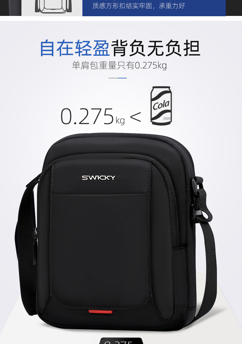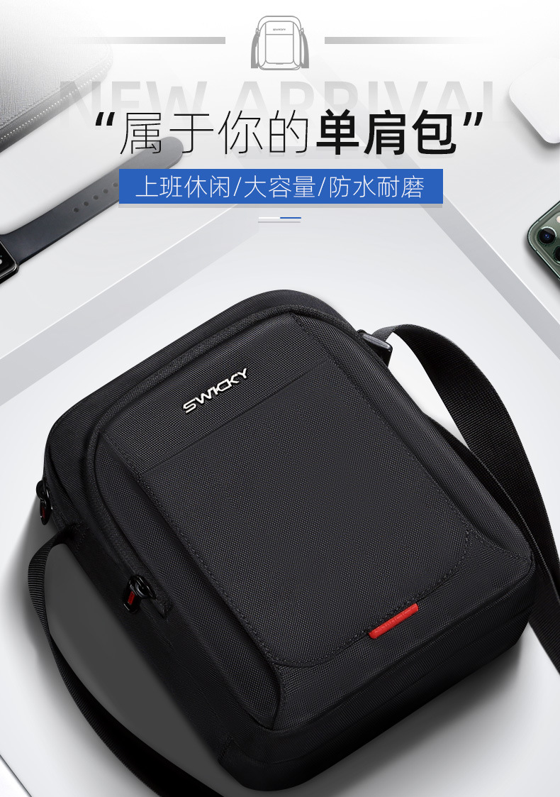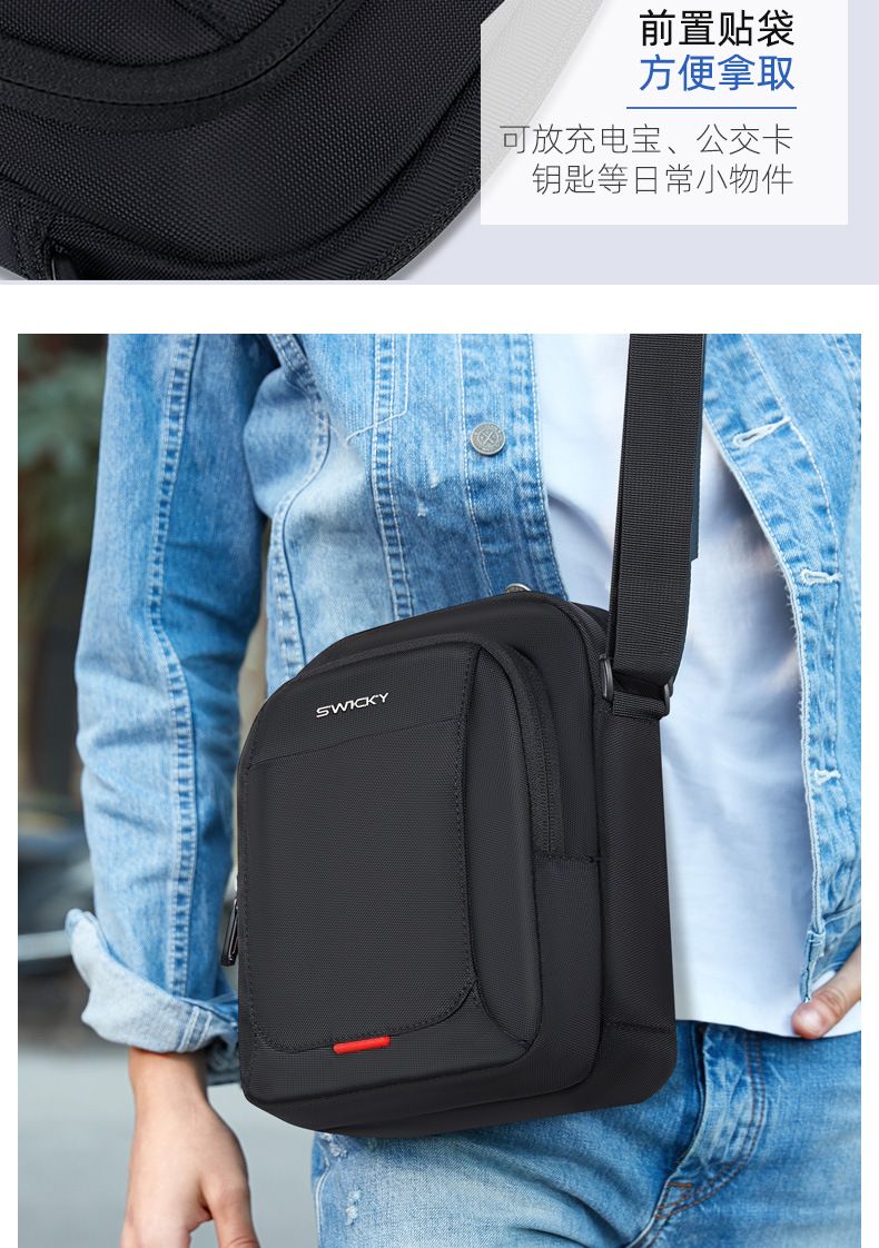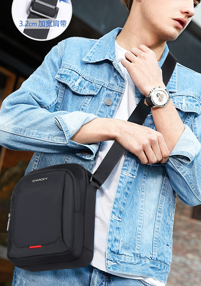 SWICKY瑞驰单肩包男包斜挎包休闲包男士包斜背包商务运动33012 黑色 黑色