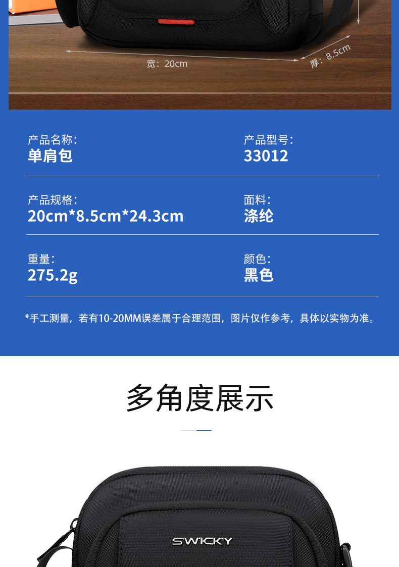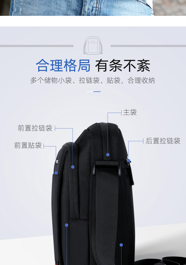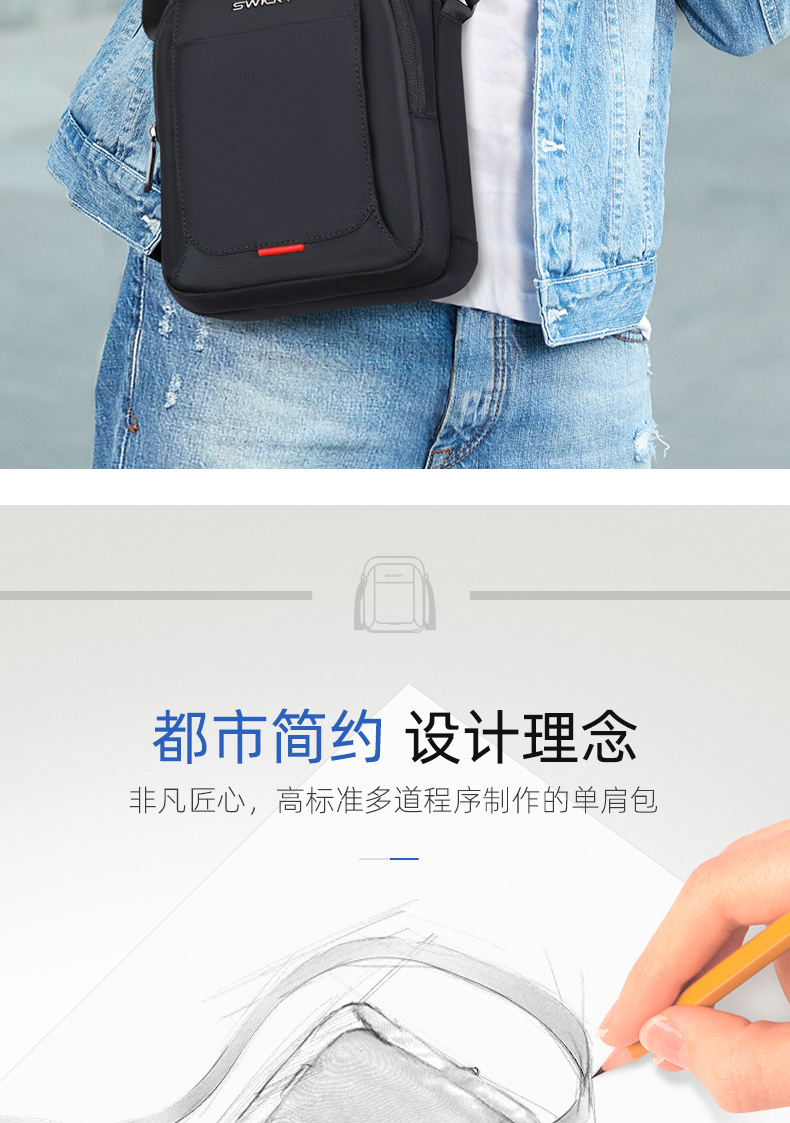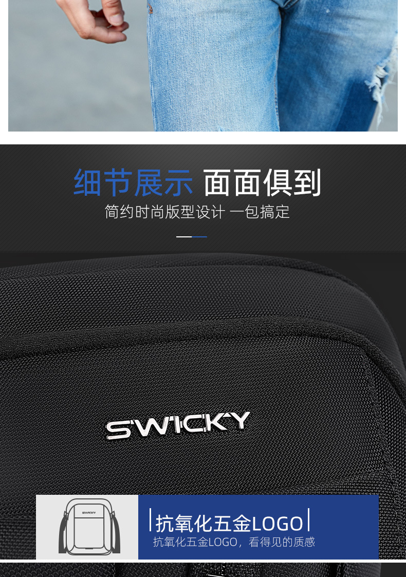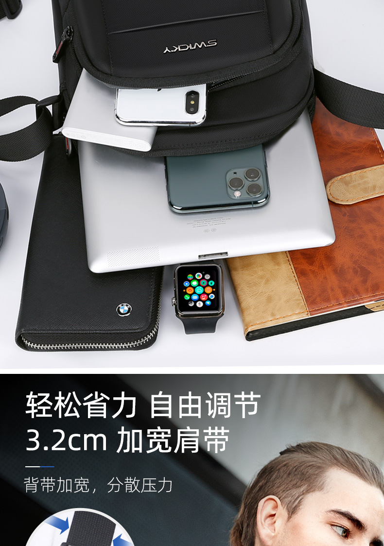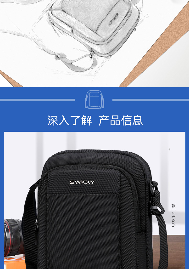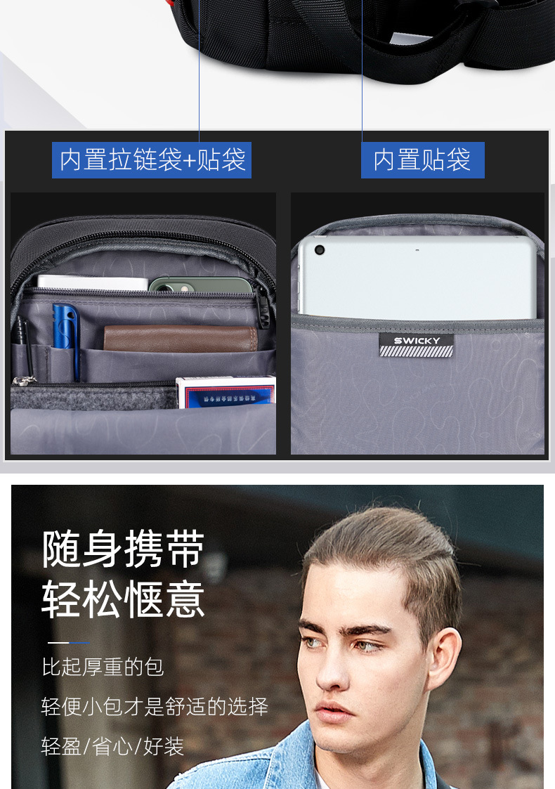 SWICKY瑞驰单肩包男包斜挎包休闲包男士包斜背包商务运动33012 黑色 黑色