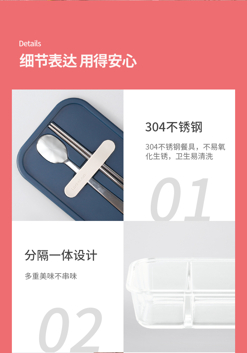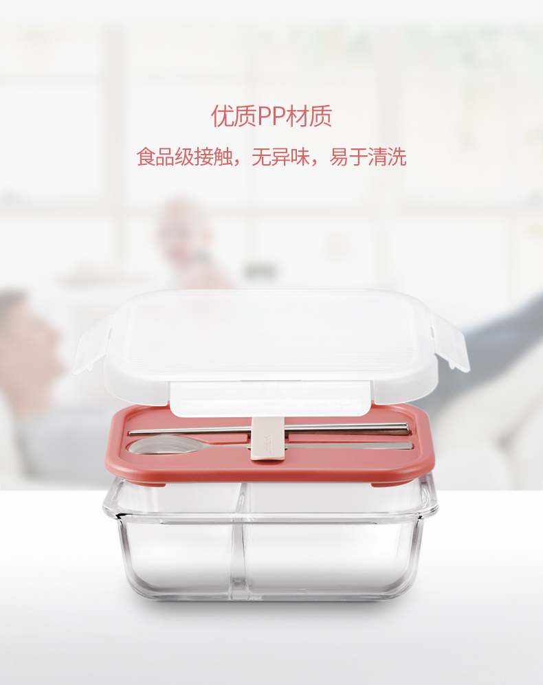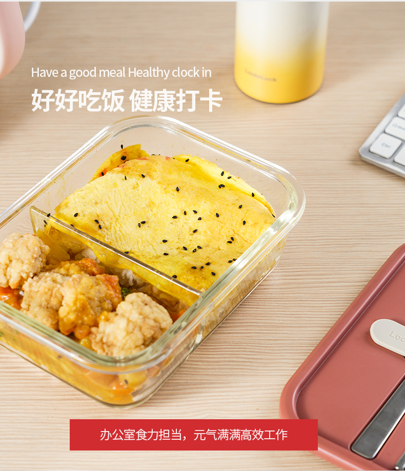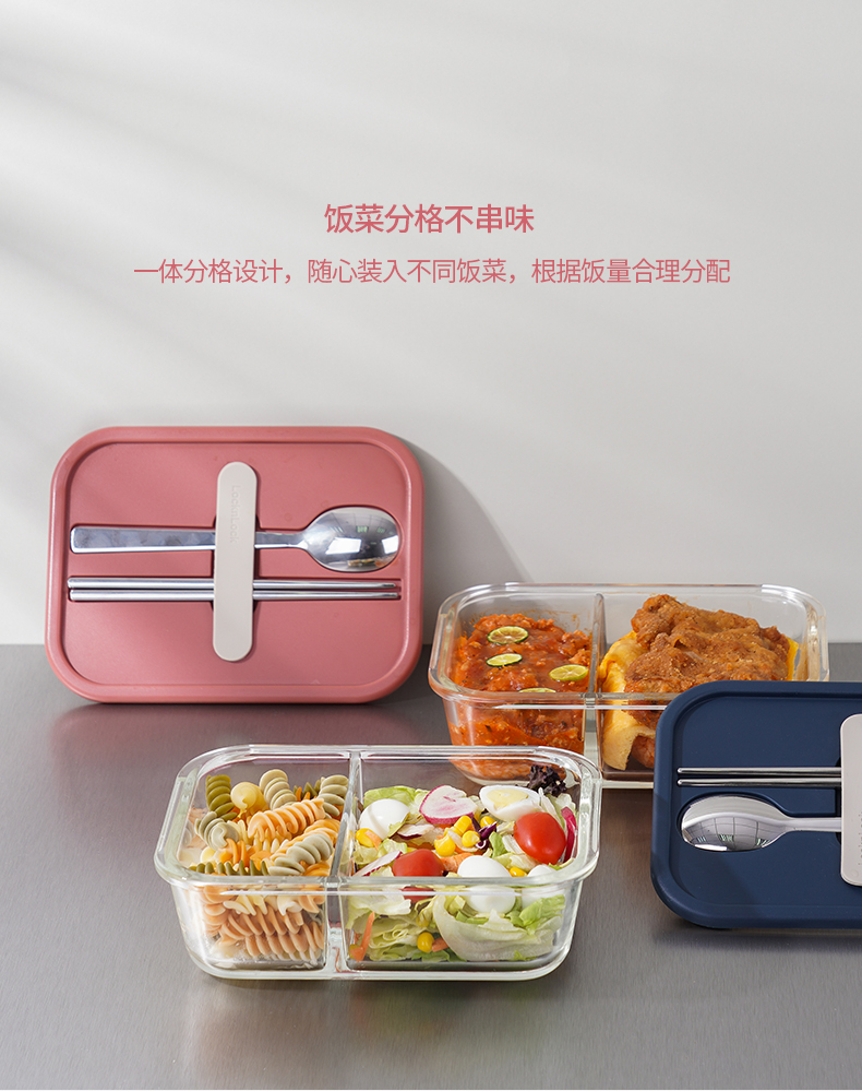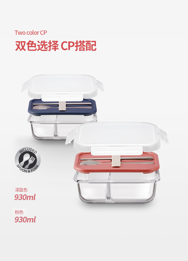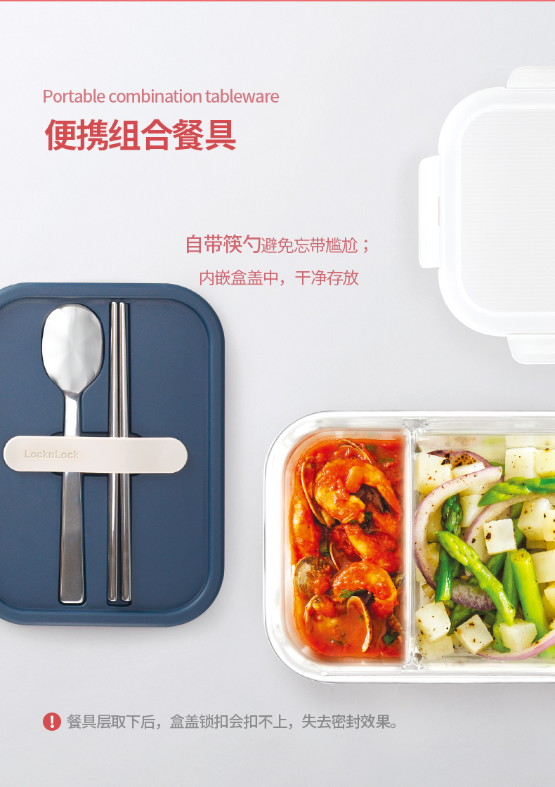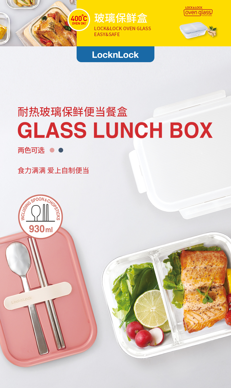 乐扣乐扣(LocknLock)耐热玻璃保鲜盒带不锈钢叉勺分隔保鲜微波炉烤箱适用930ml LLG991(单位:套) 粉色