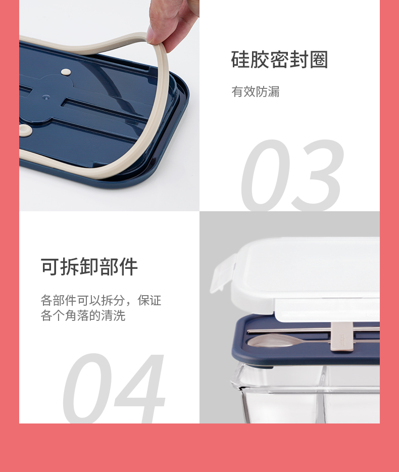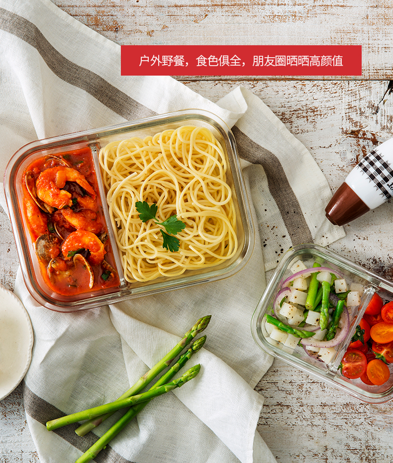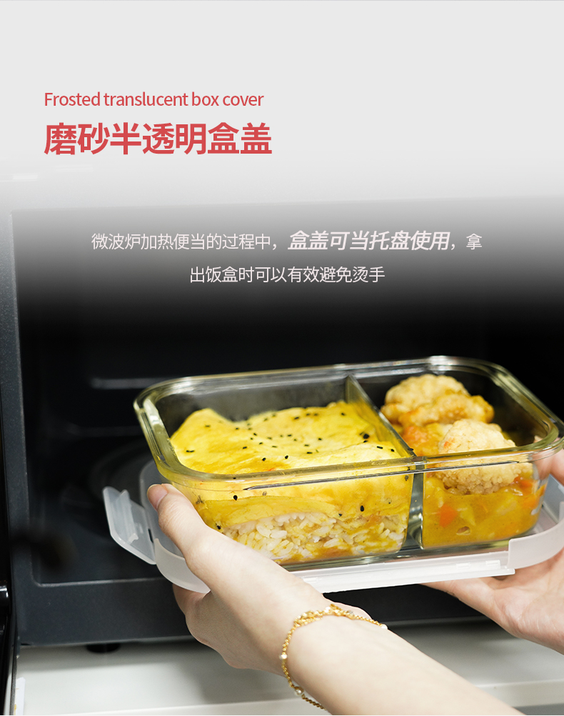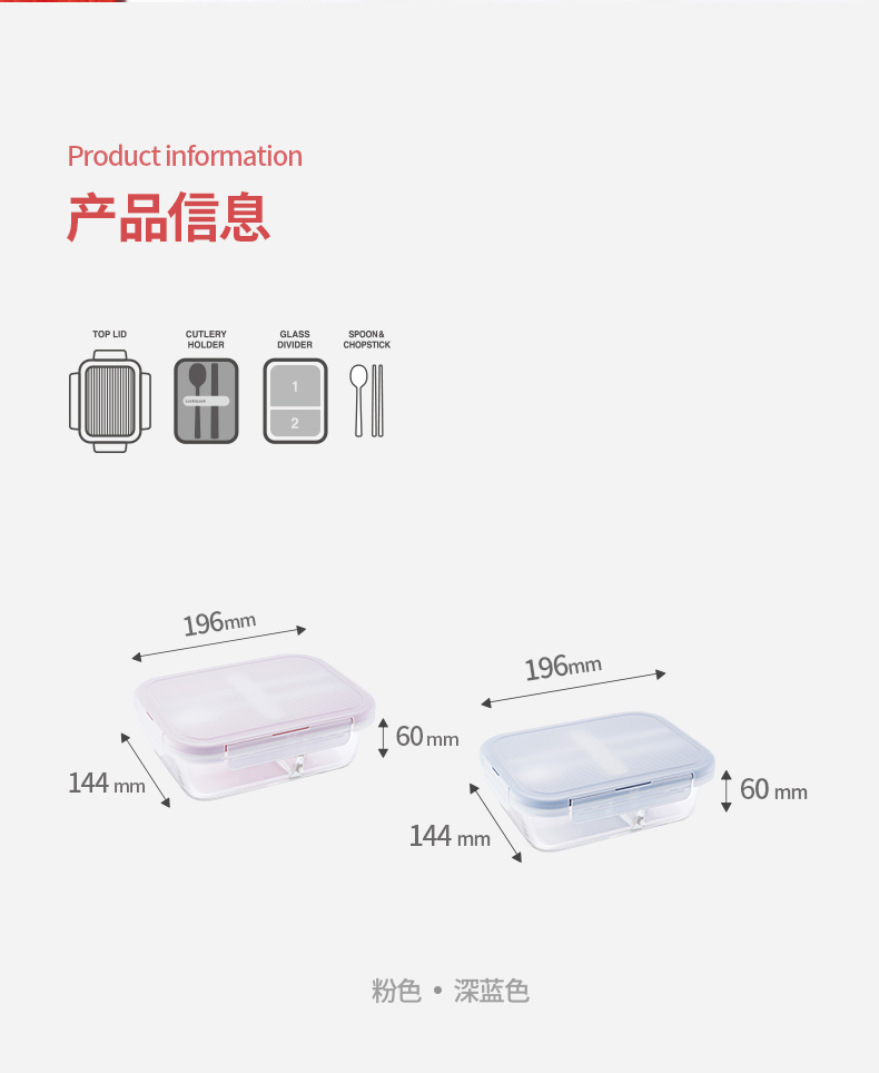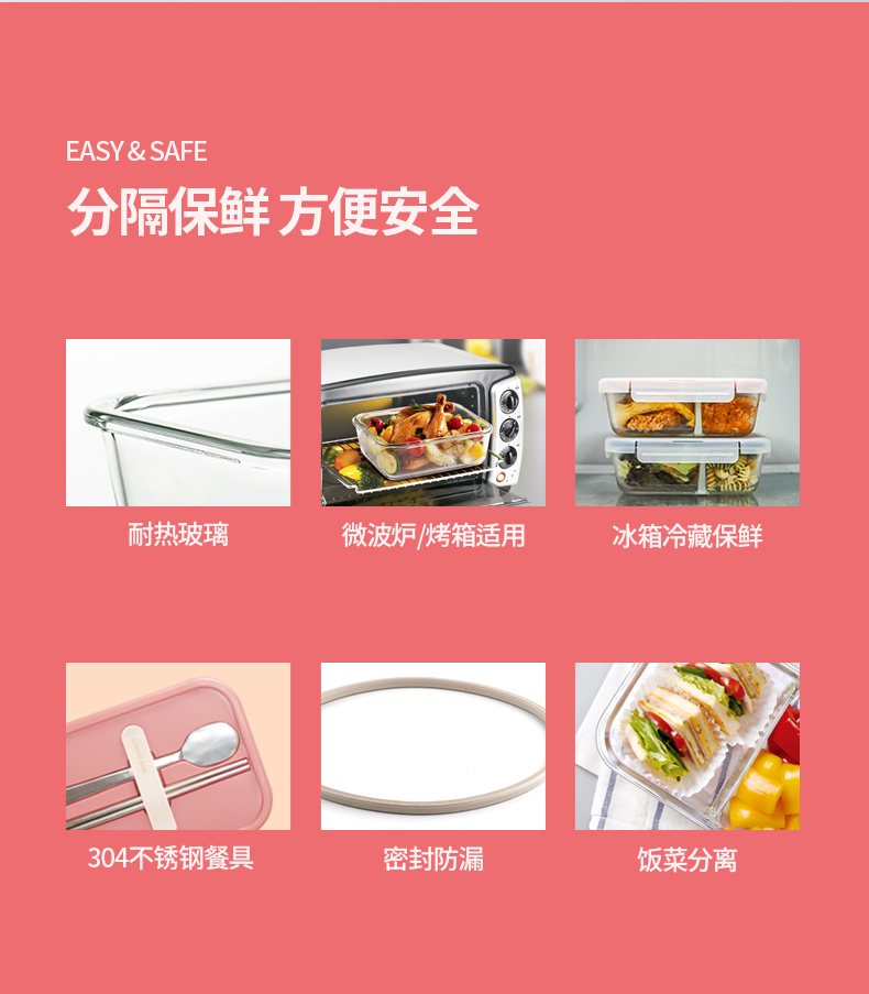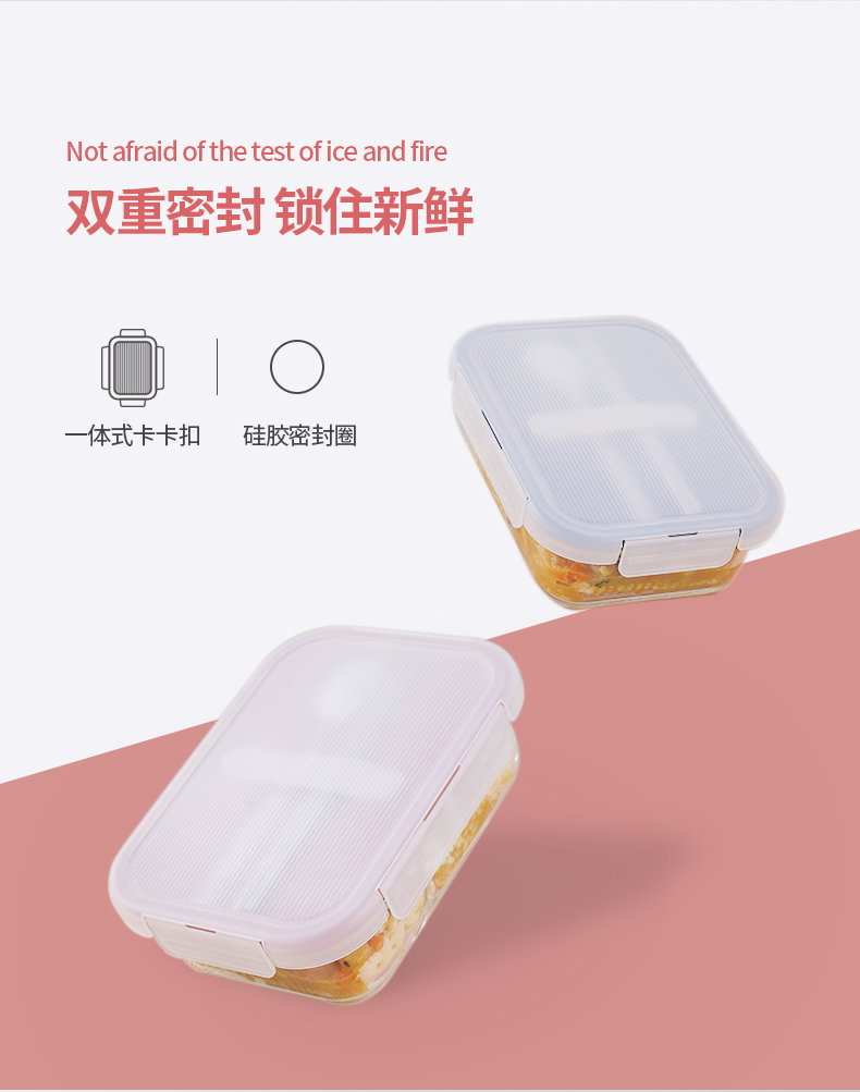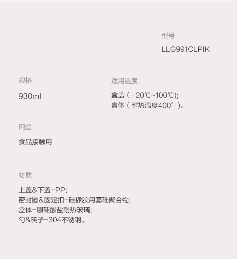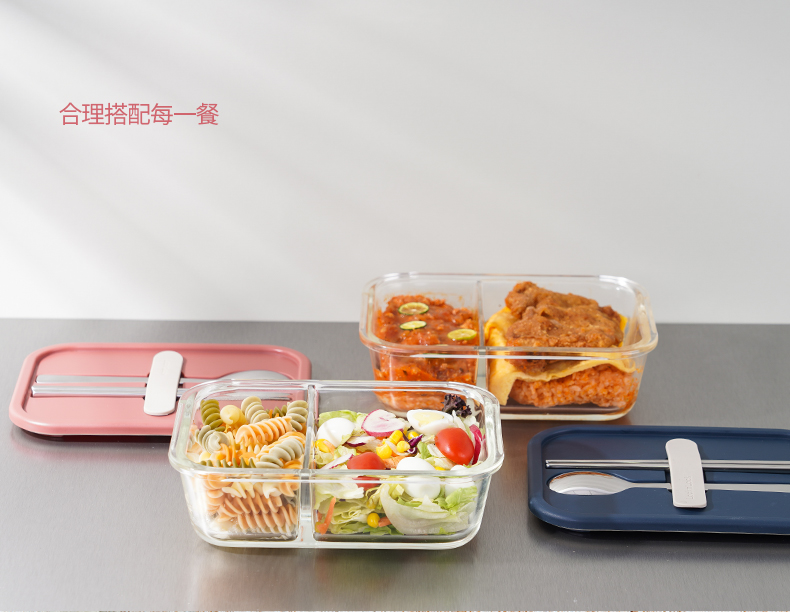 乐扣乐扣(LocknLock)耐热玻璃保鲜盒带不锈钢叉勺分隔保鲜微波炉烤箱适用930ml LLG991(单位:套) 粉色