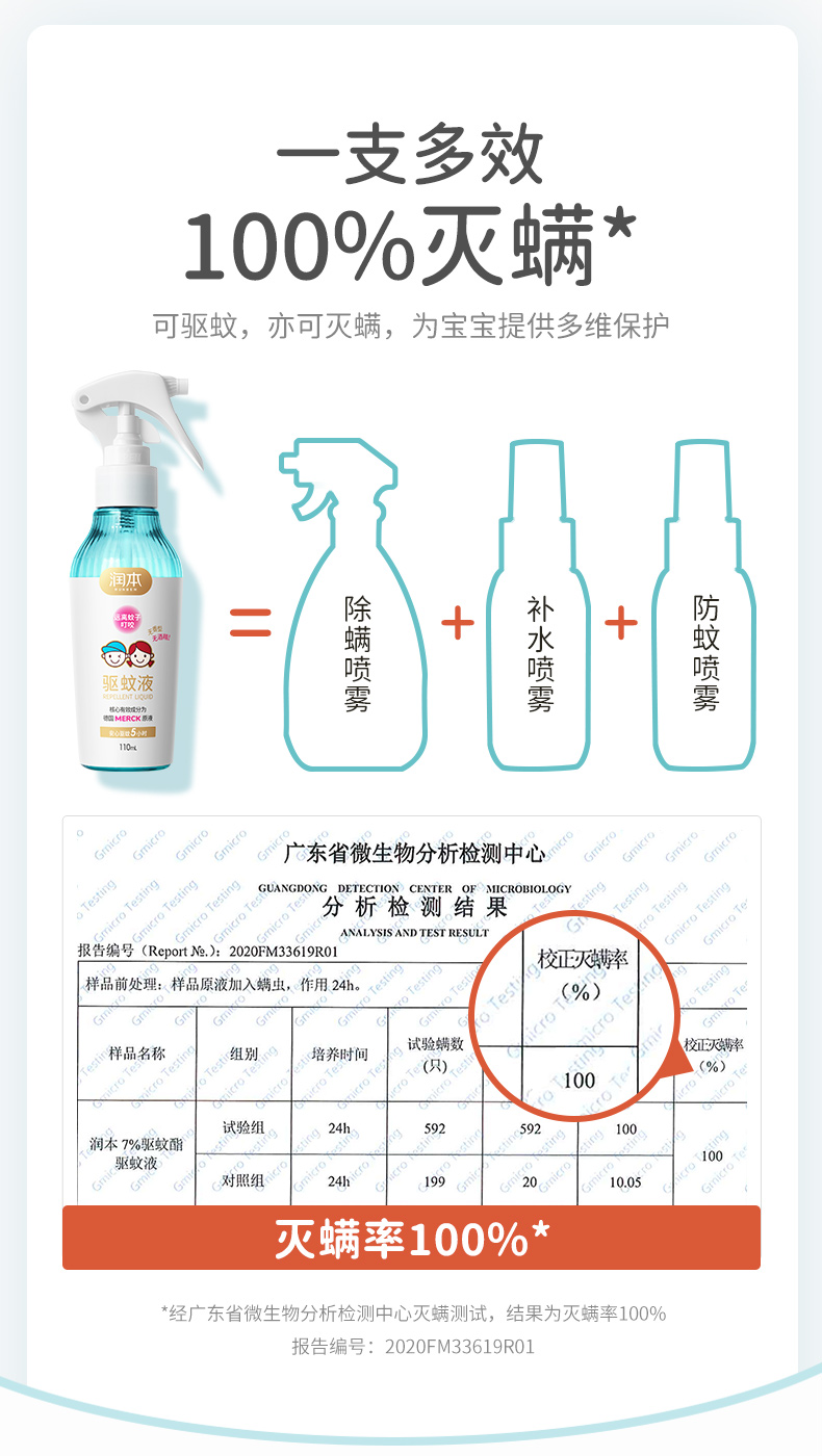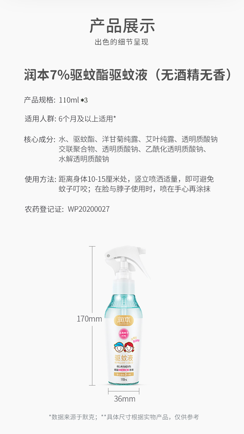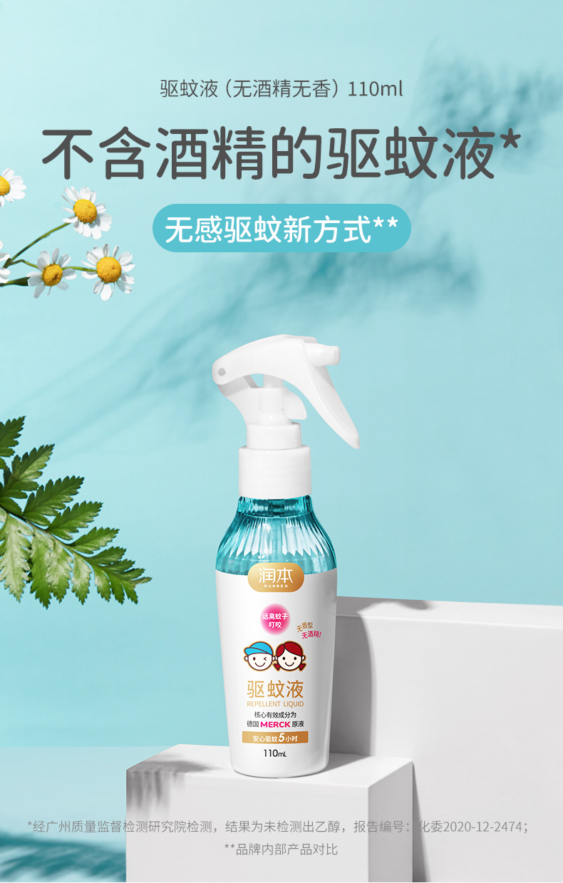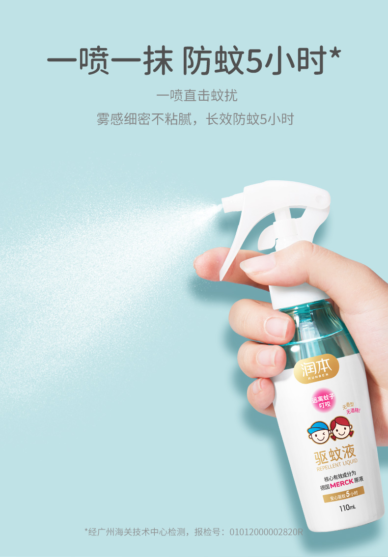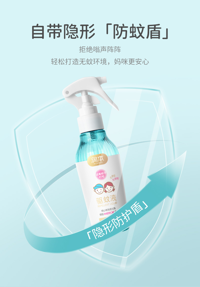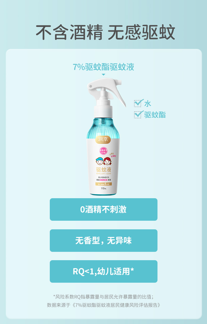 润本 7%驱蚊酯驱蚊液(无酒精无香型)110ml*3 天蓝色