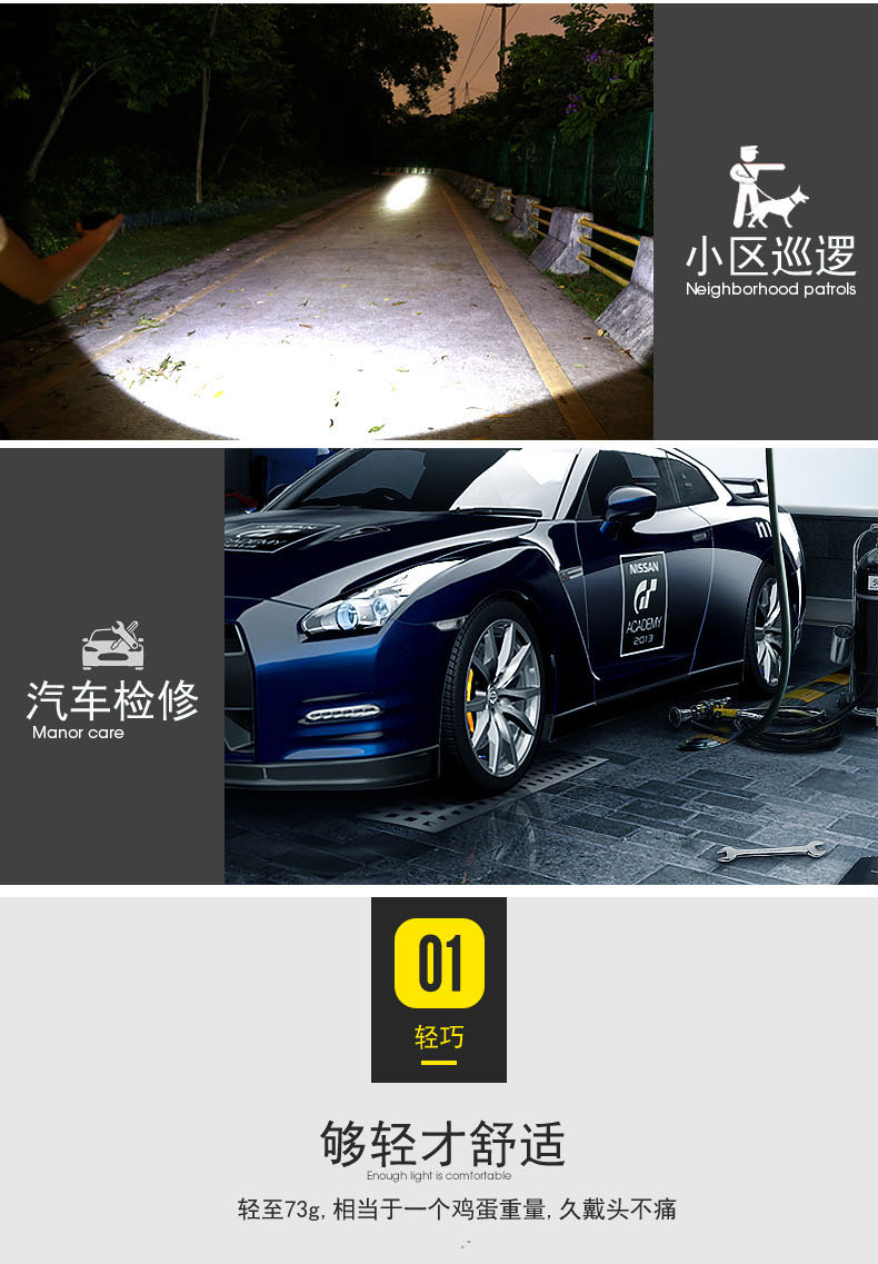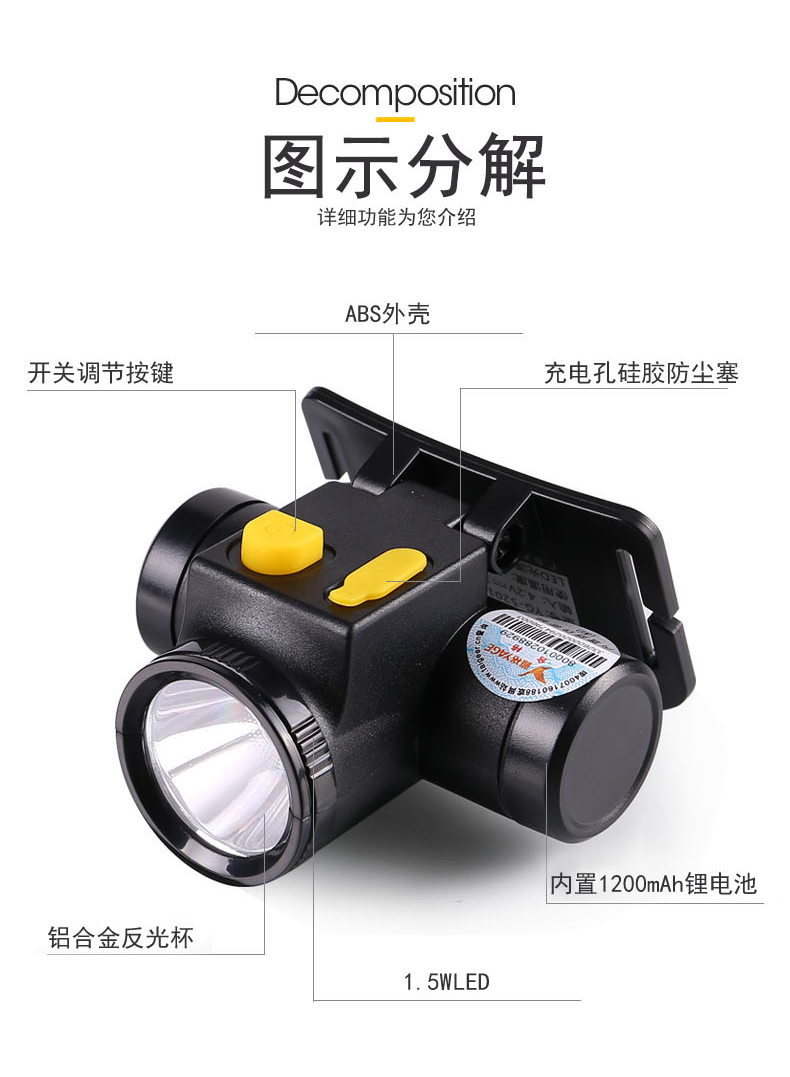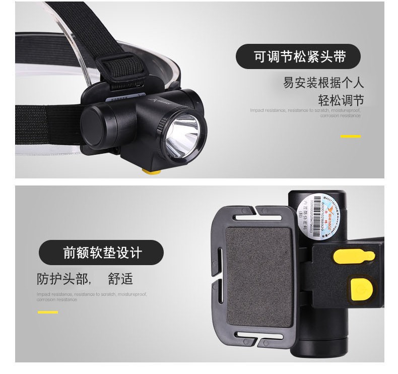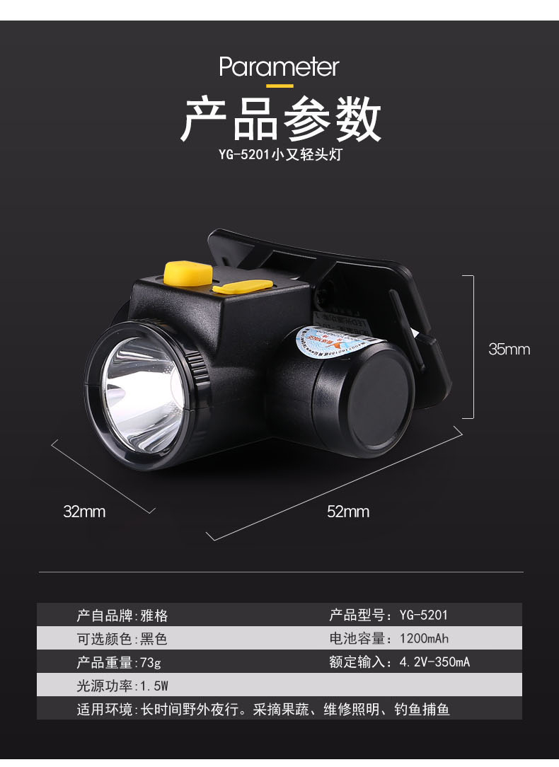 雅格led充电轻便头灯户外照明方便小型头戴灯照明头灯YG5201 雅格5201头灯 黑色
