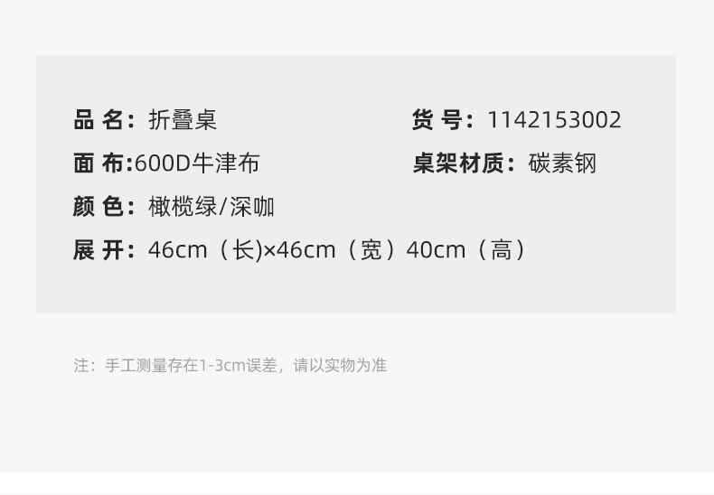 骆驼CAMEL户外露营折叠桌野营旅游便携折叠可置水杯小巧家用烧烤摆摊桌子 折叠桌1142153002 橄榄绿
