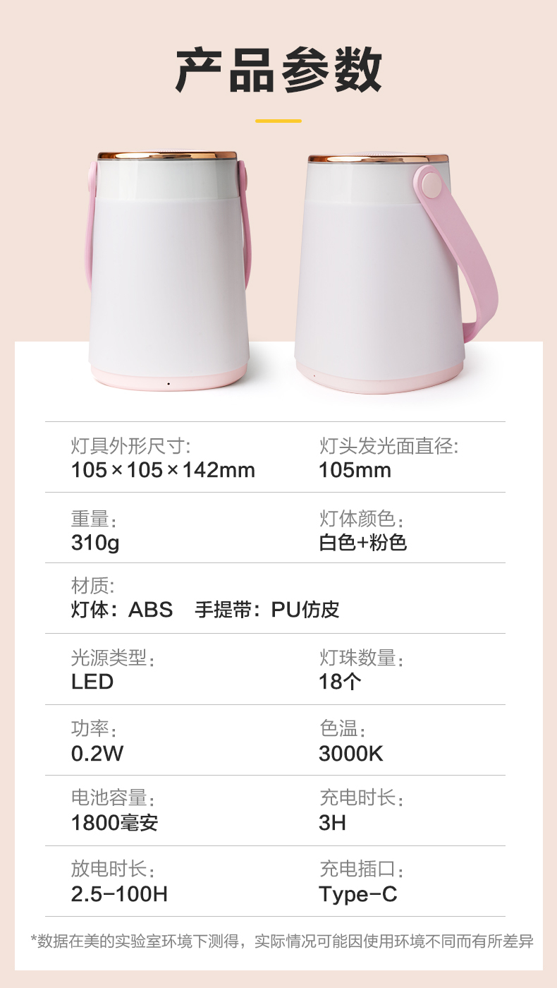美的启微母婴灯MTD4-M/K-16手提小夜灯月子婴儿喂奶哺乳专用母婴灯卧室睡眠充电床头台灯 台 粉色
