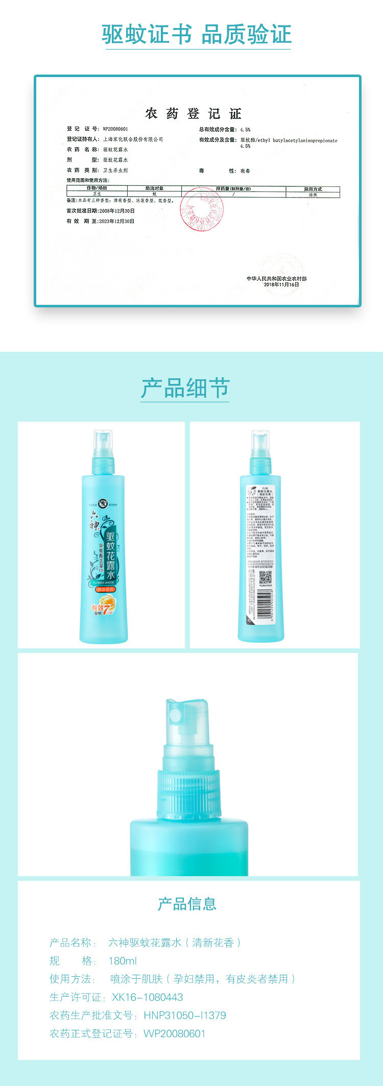 六神喷雾驱蚊花露水(清新花香)180ml*2瓶 20282(偏远地区不发货新疆、西藏、青海、甘肃、内蒙、宁夏) 180ml*2瓶