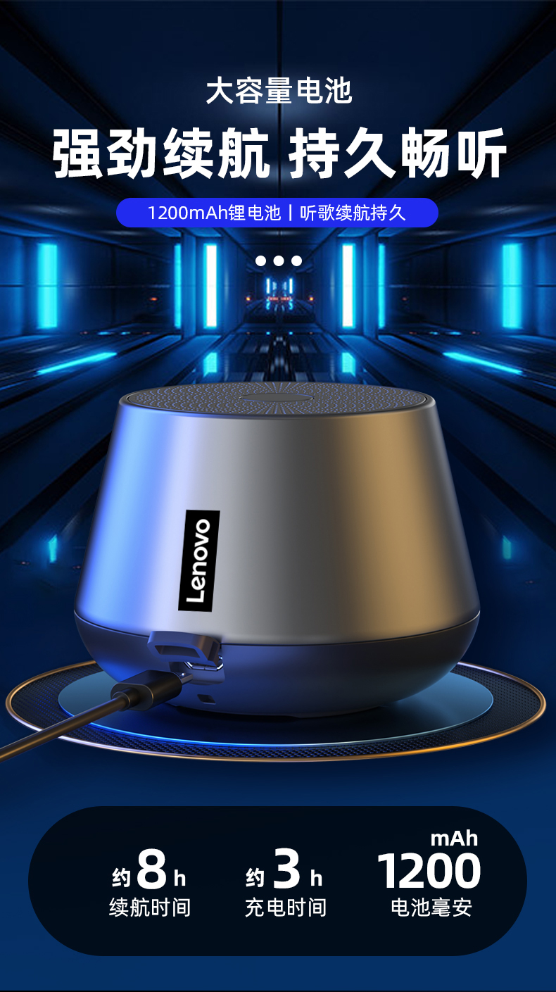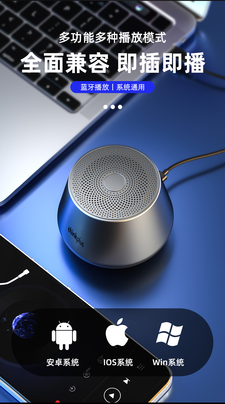联想(Lenovo) thinkplus K3Pro蓝牙音响(单位:件) 无线迷你音响 手机电脑户外家用便携重低音炮多媒体蓝牙音箱 黑色