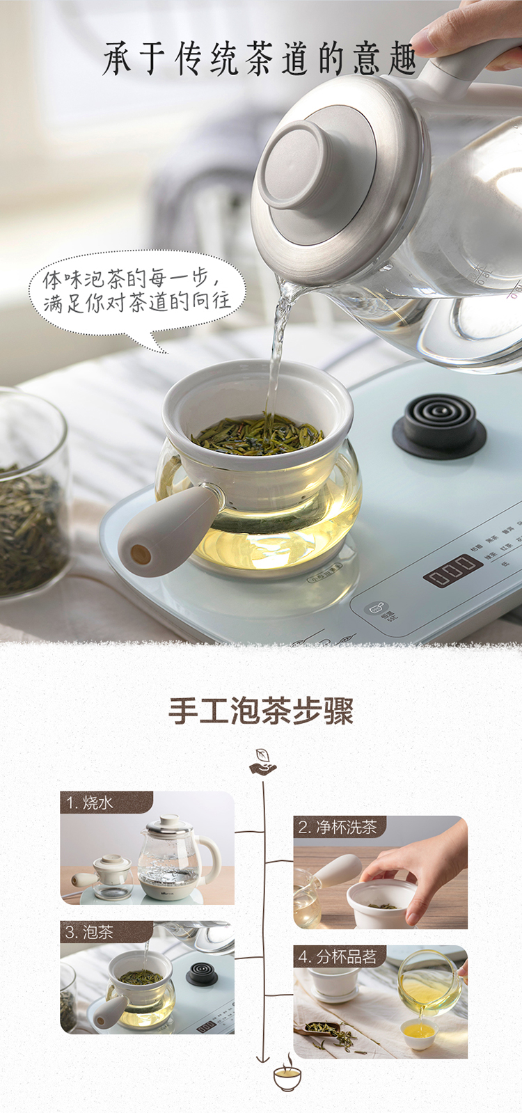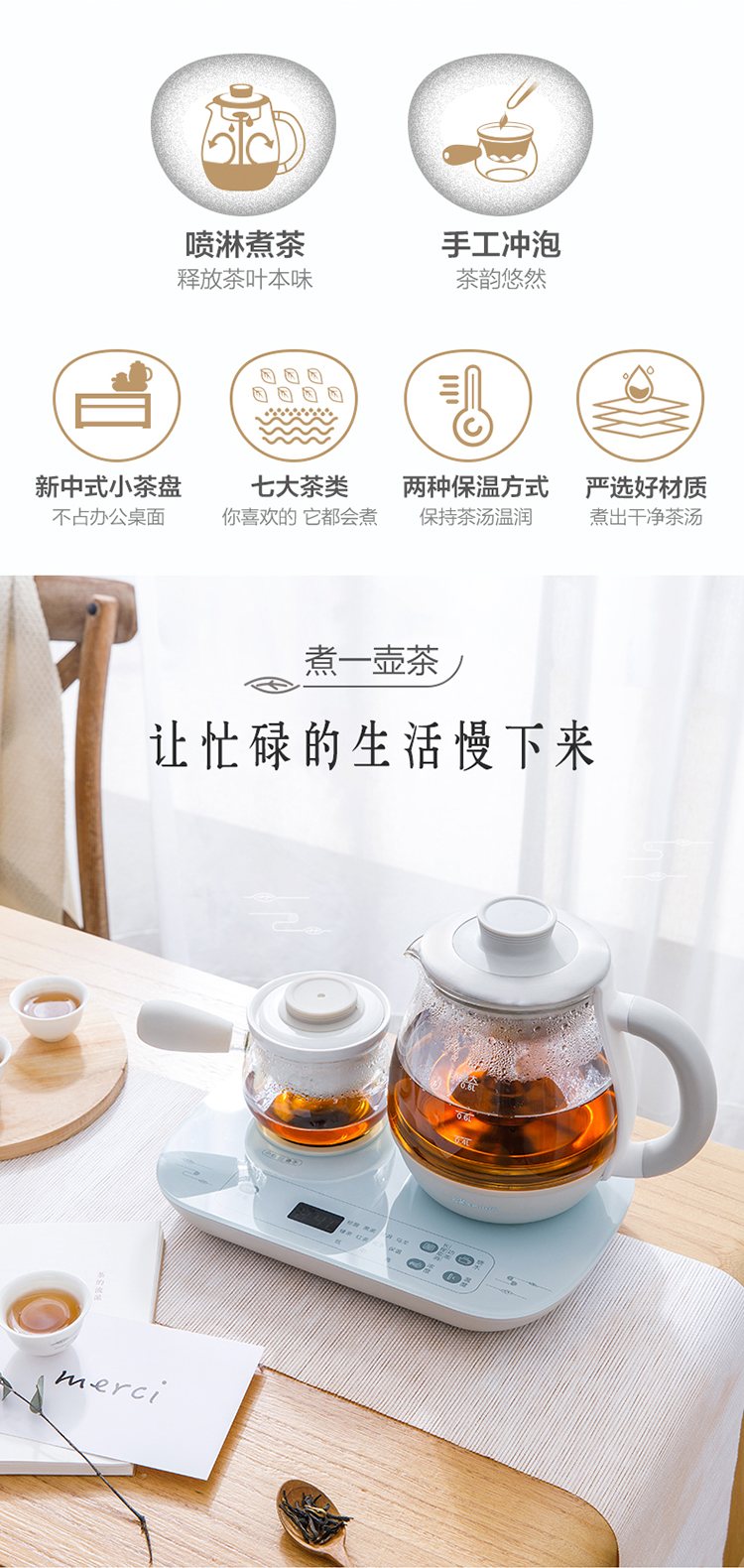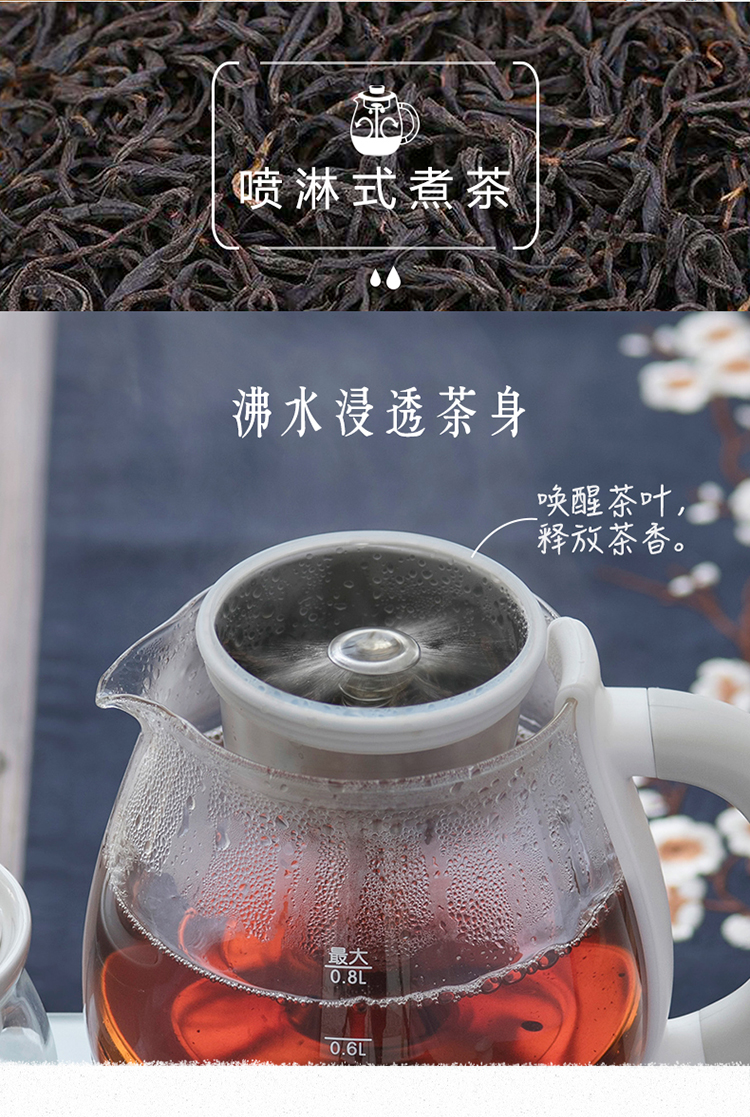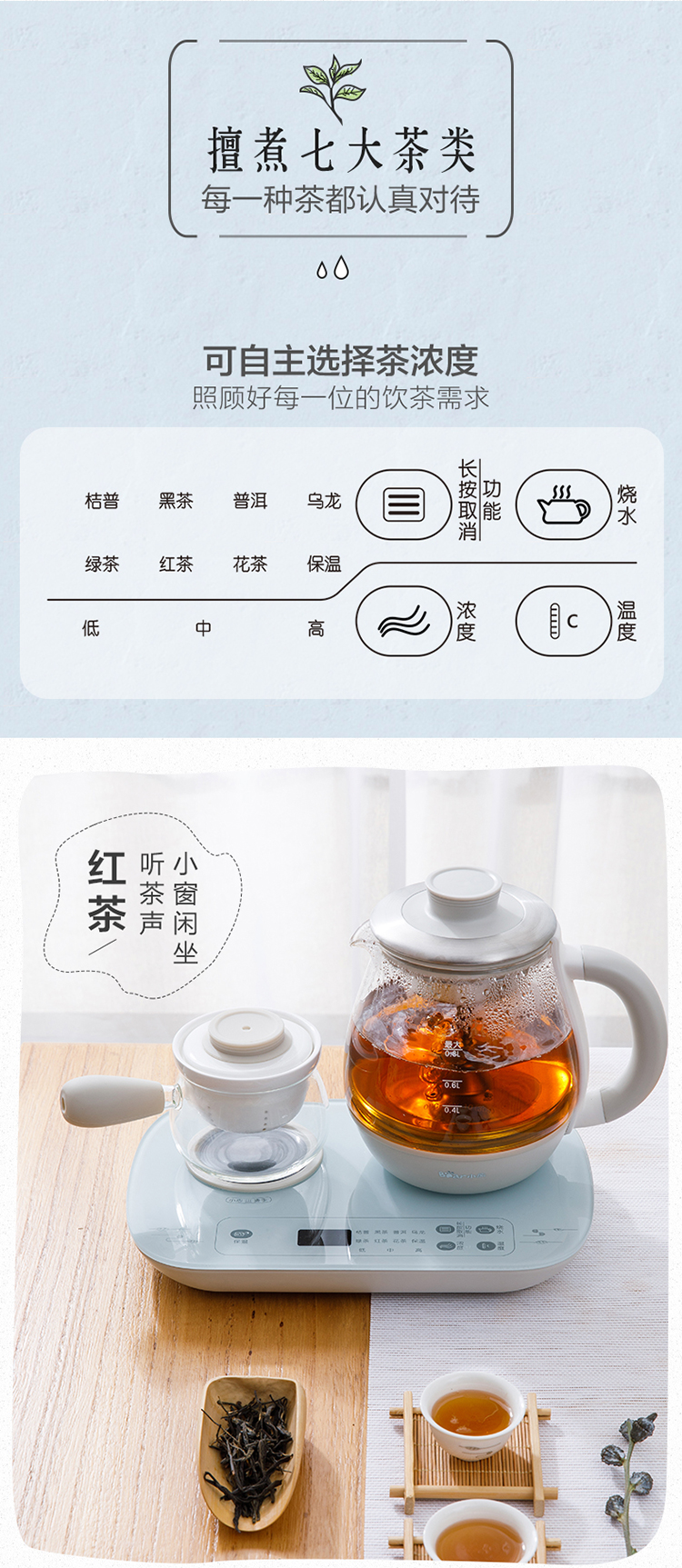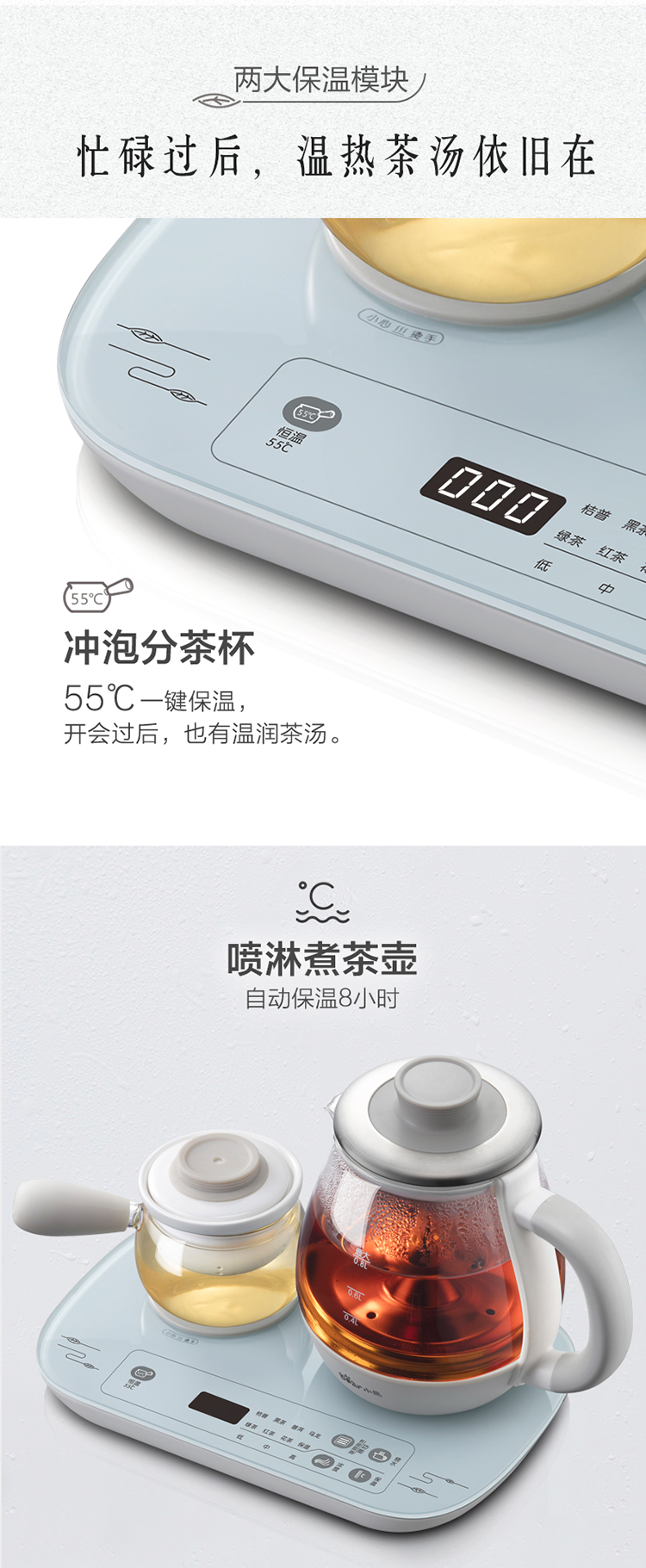 小熊(Bear)煮茶器煮茶壶 0.8L蒸汽喷淋式蒸茶壶养生壶电水壶热水壶304不锈钢烧水壶茶具黑茶ZCQ-A08E1 天蓝色