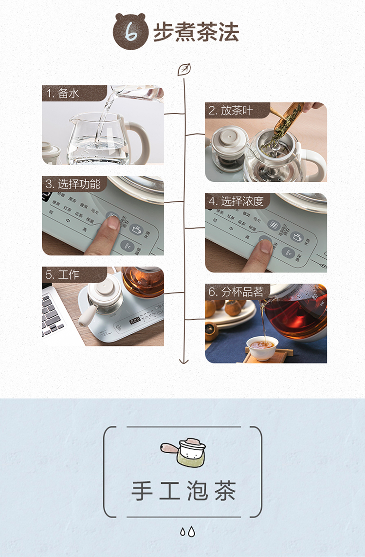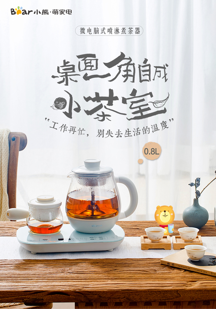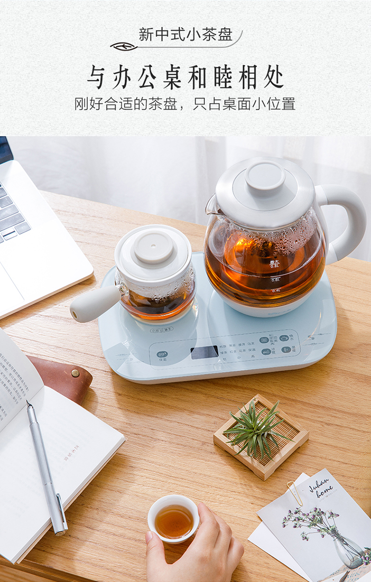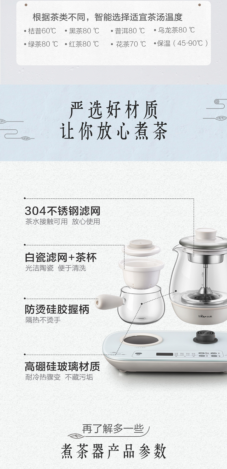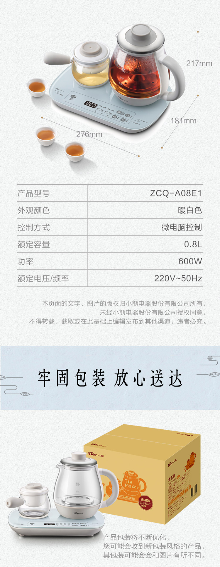 小熊(Bear)煮茶器煮茶壶 0.8L蒸汽喷淋式蒸茶壶养生壶电水壶热水壶304不锈钢烧水壶茶具黑茶ZCQ-A08E1 天蓝色