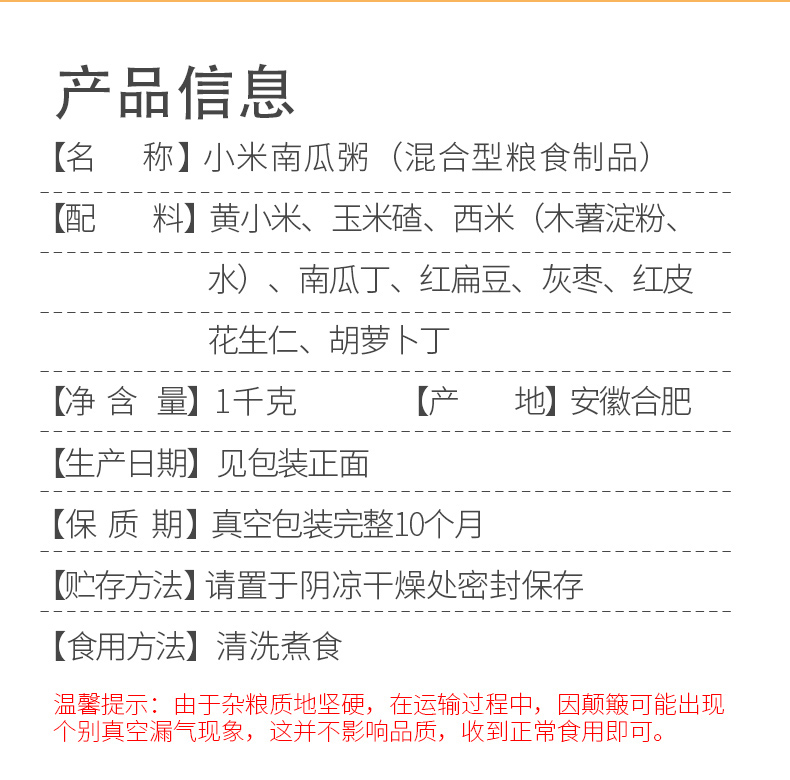 燕之坊 小米南瓜粥料1kg(单位:袋) 本白色