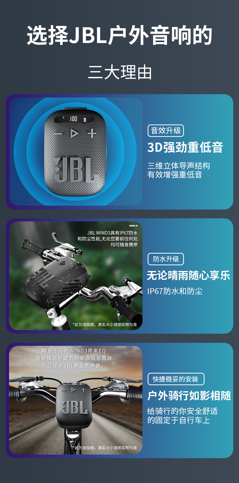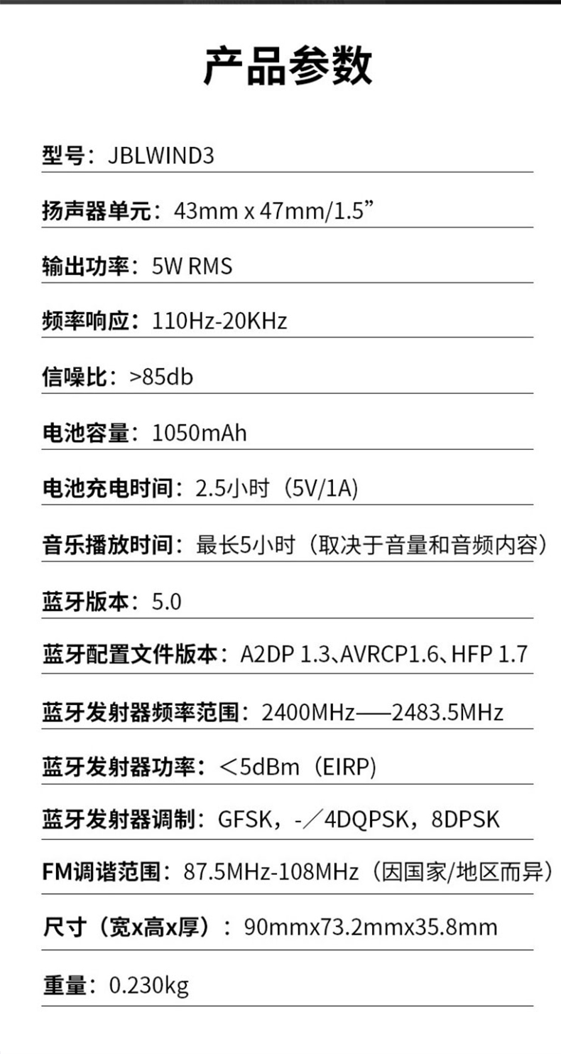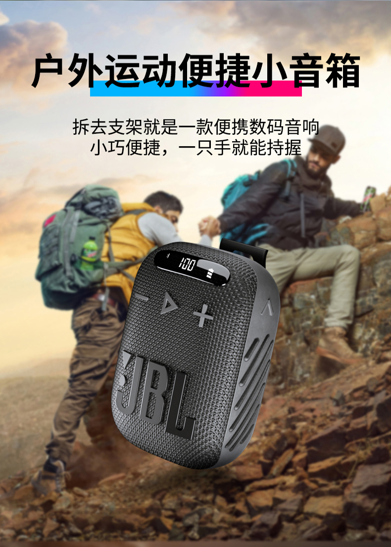 JBL WIND3蓝牙无线链接骑行户外游玩扬声器 液晶屏 黑色