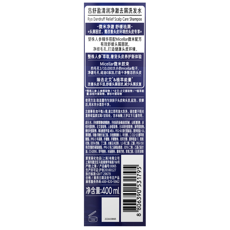 【商超同款】Ryo吕 蓝吕 深层清洁去屑止痒无硅油洗发水400ml 蓝吕洗发水400ml