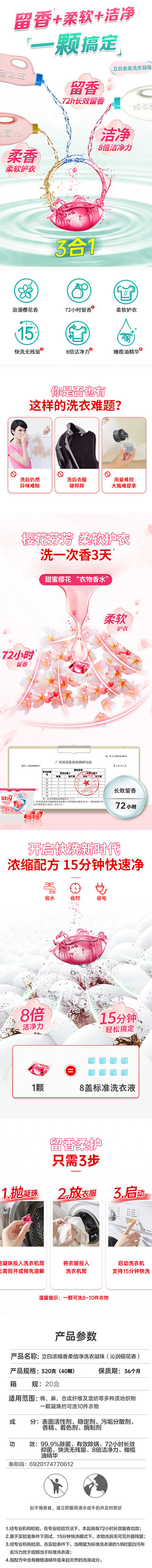 立白浓缩香柔倍净洗衣凝珠320克(40颗) 白色