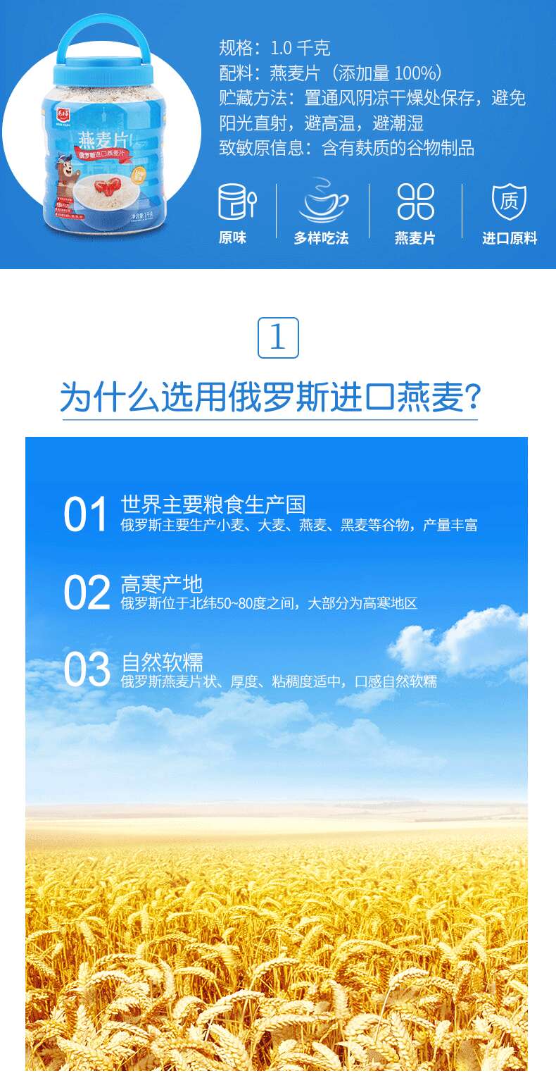 精力沛俄罗斯燕麦片无添加蔗糖即食营养谷物早餐代餐1kg 1kg