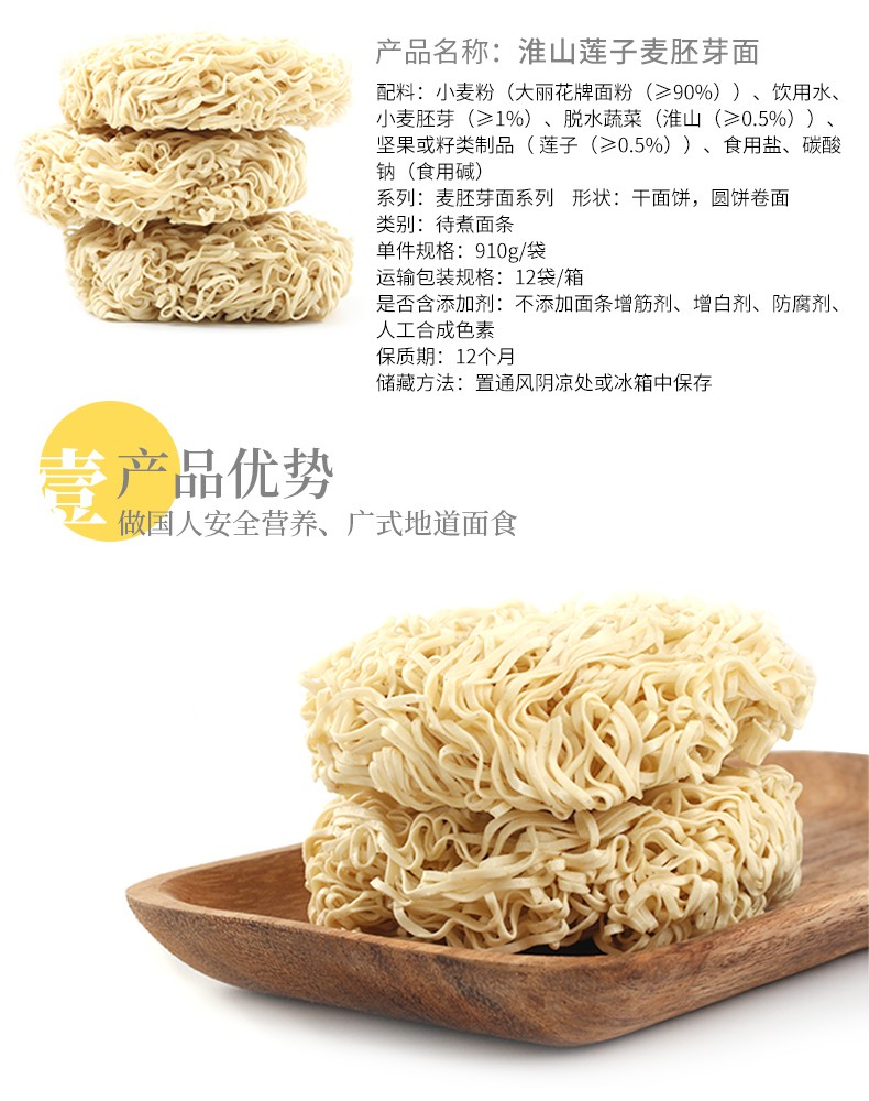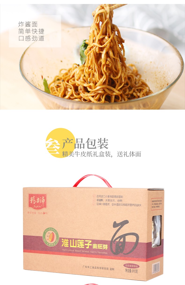 精力沛非油炸方便速食淮山莲子麦胚芽面910g 箱 黄色