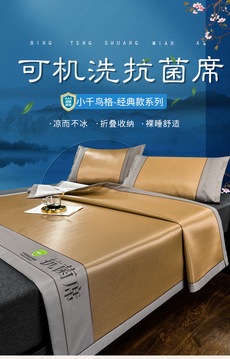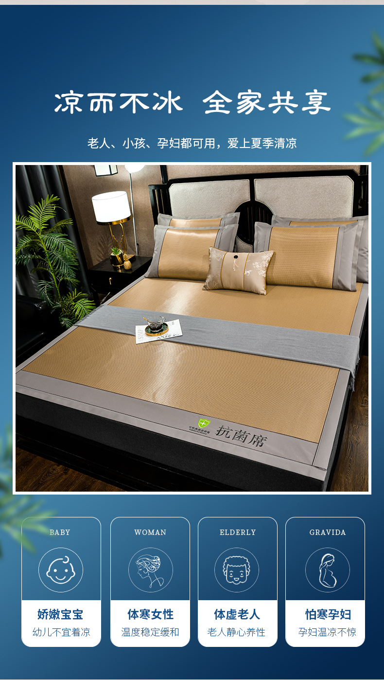 杉杉 艾草抗菌席 抗菌席 床笠180*200cm 三件套SS-L1015 琥珀色 1.8米床