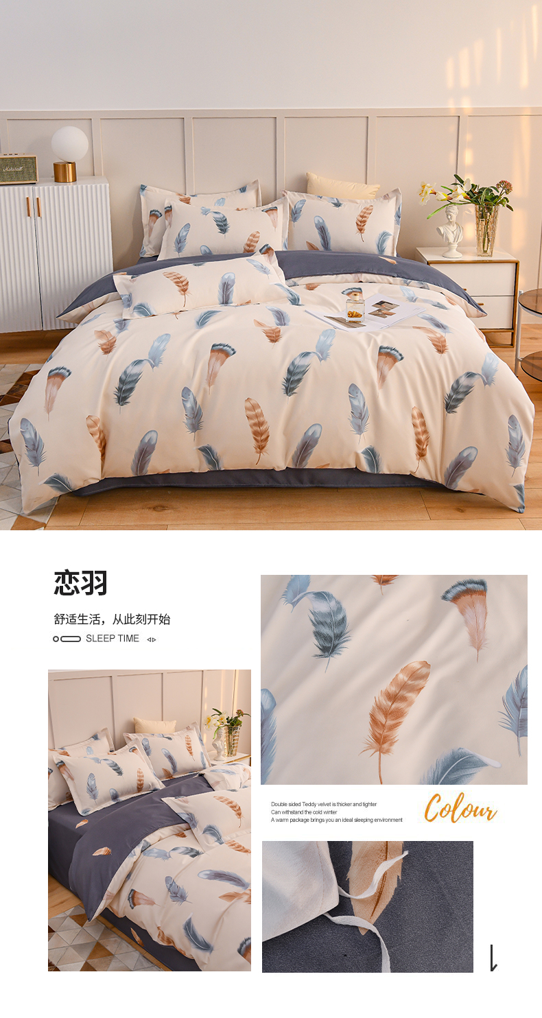 杉杉 磨毛加厚阳绒四件套 羽恋 1.5/1.8米床 被套200*230cm 四件套SS-T1012 灰蓝色