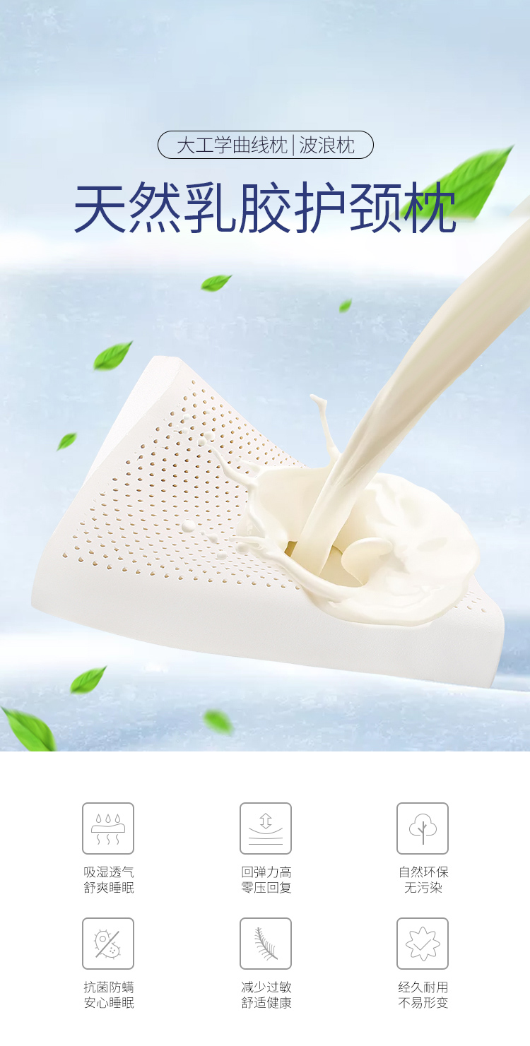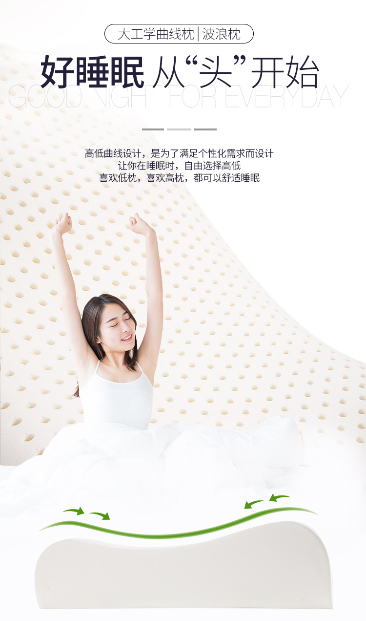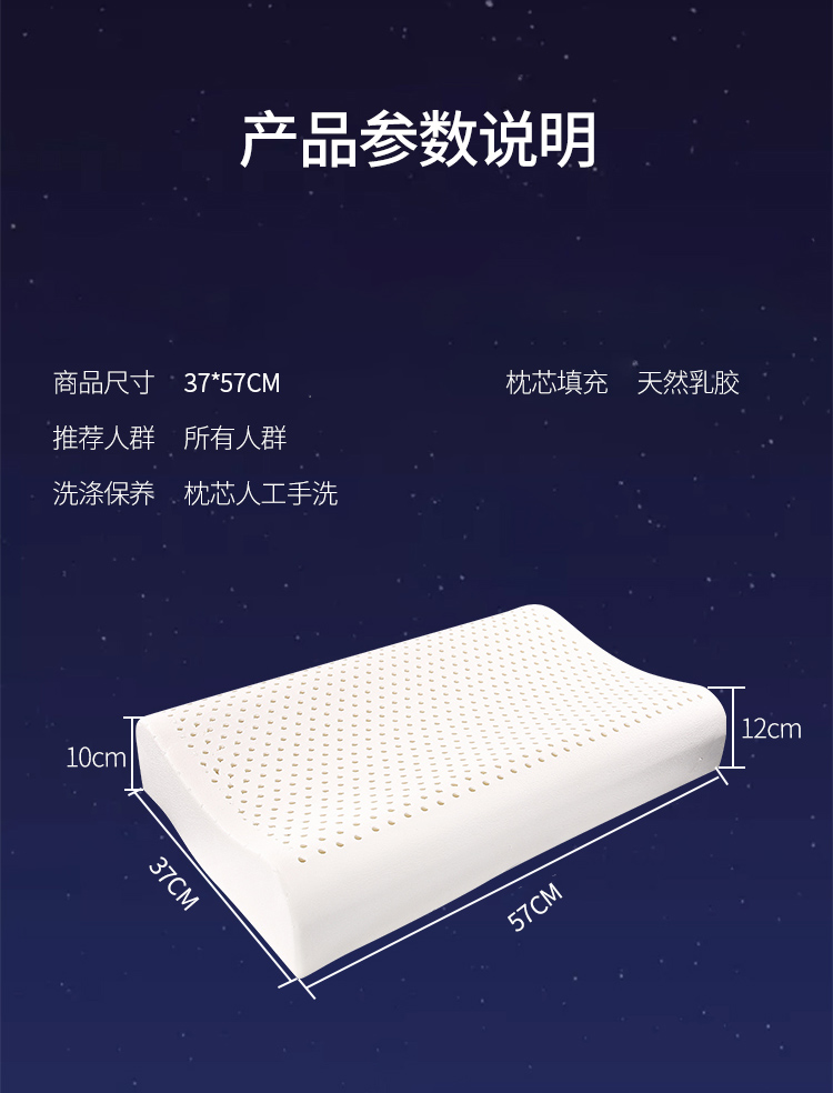 杉杉 泰国天然乳胶枕 乳胶枕 37*57cm SS-Z1013 白色