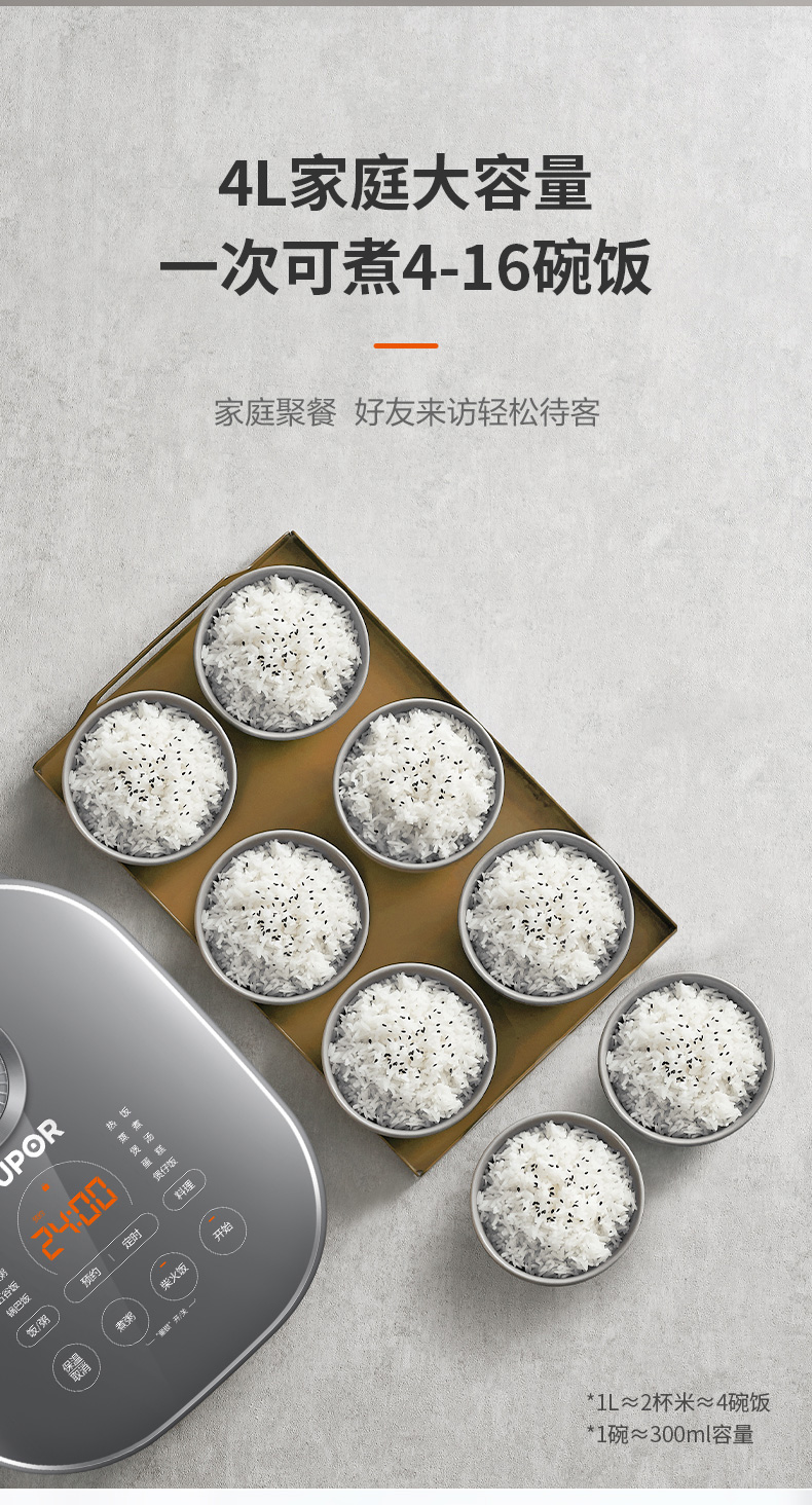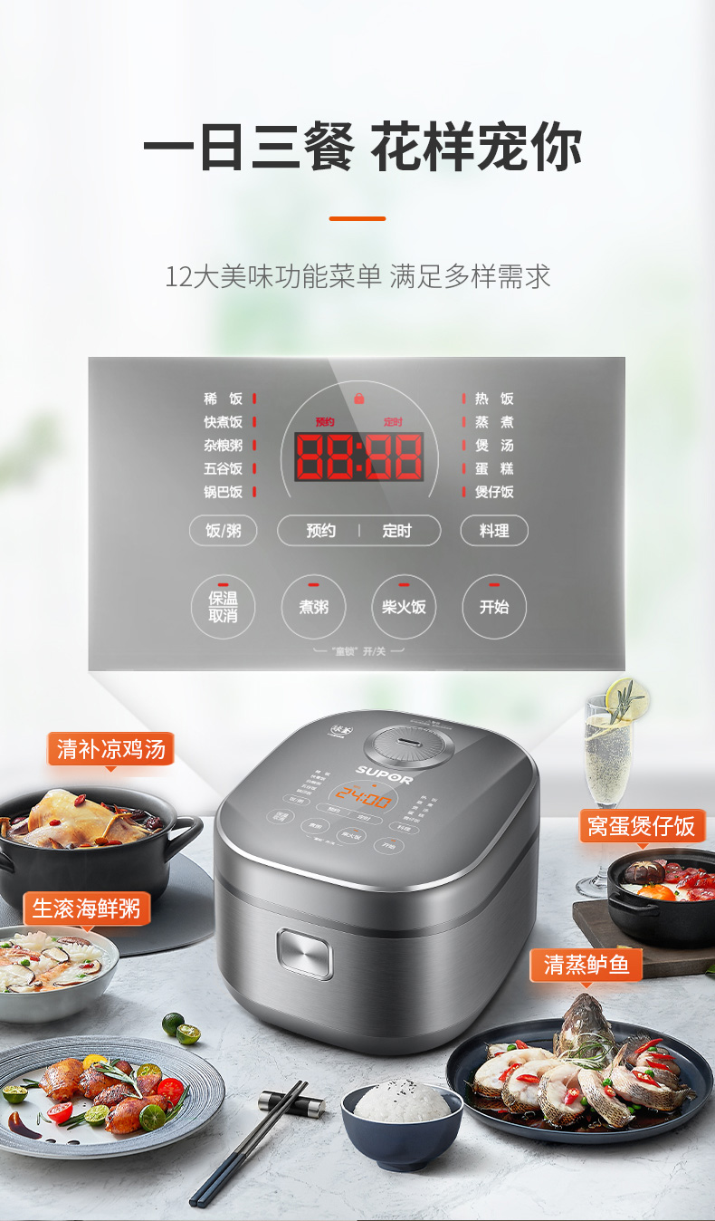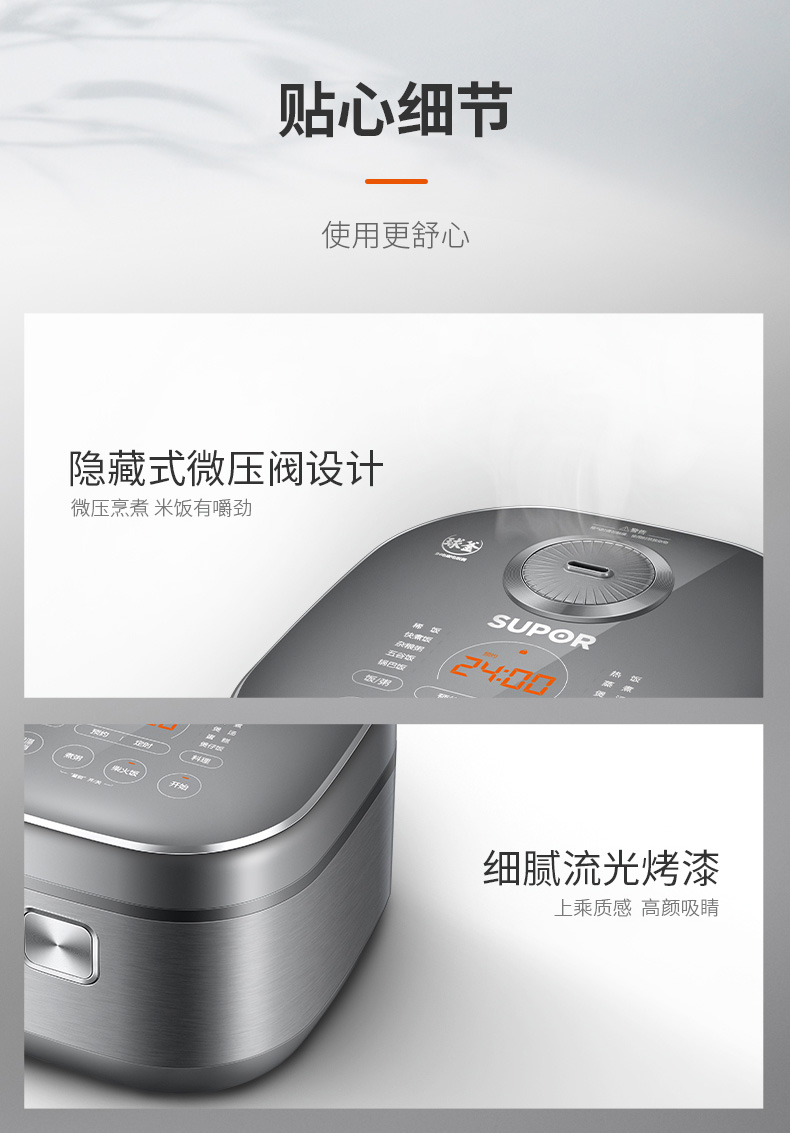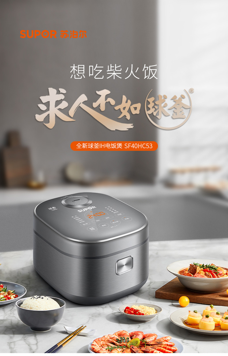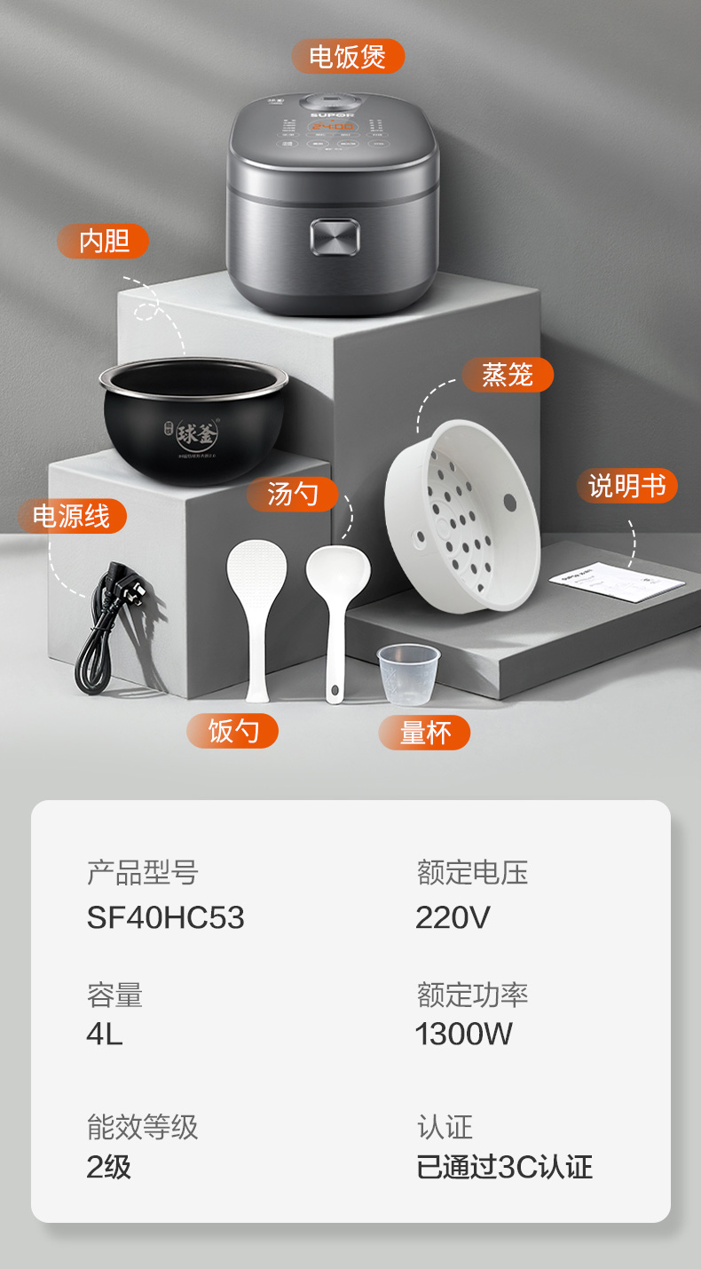 苏泊尔(SUPOR)4L电饭煲 SF40HC53智能预约煮粥锅 IH电磁加热 家用球釜内胆电饭锅4-6人适用(单位:台) 深空灰