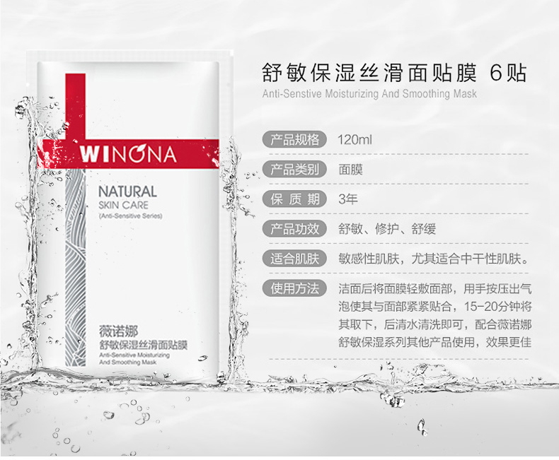 薇诺娜 舒敏保湿丝滑面贴膜20ml×6片