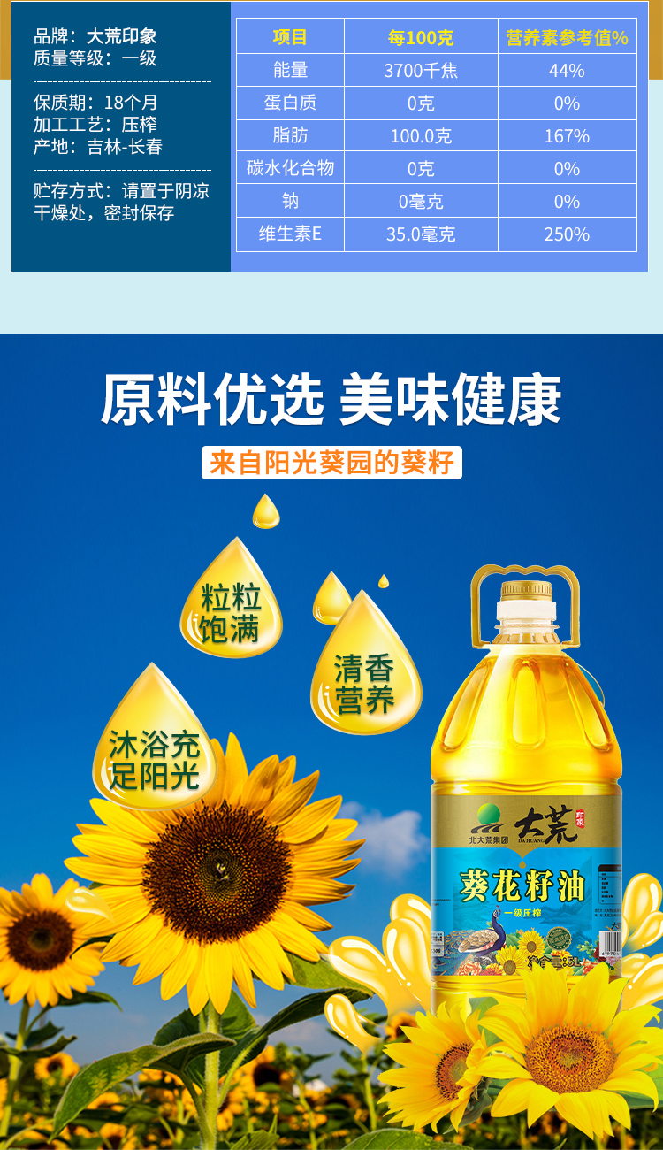 北大荒-大荒印象一级压榨葵花籽油5L(单位:桶) 黄色