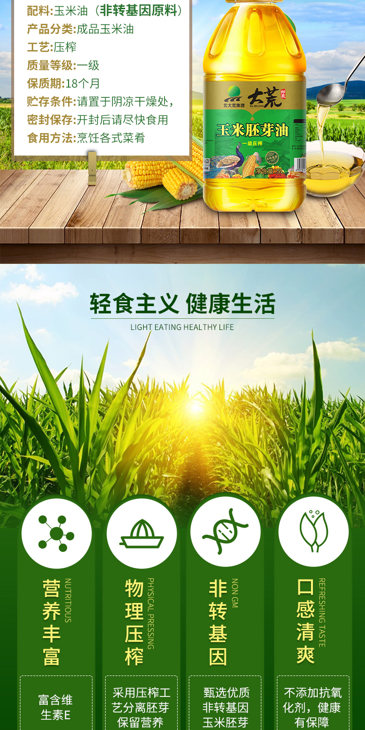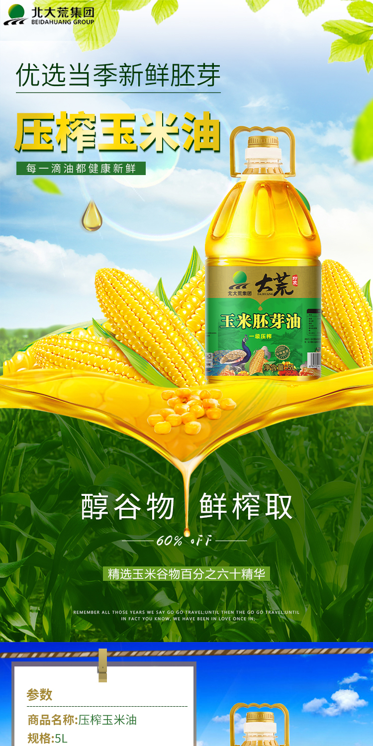 北大荒-大荒印象一级压榨玉米油5L(单位:桶) 黄色