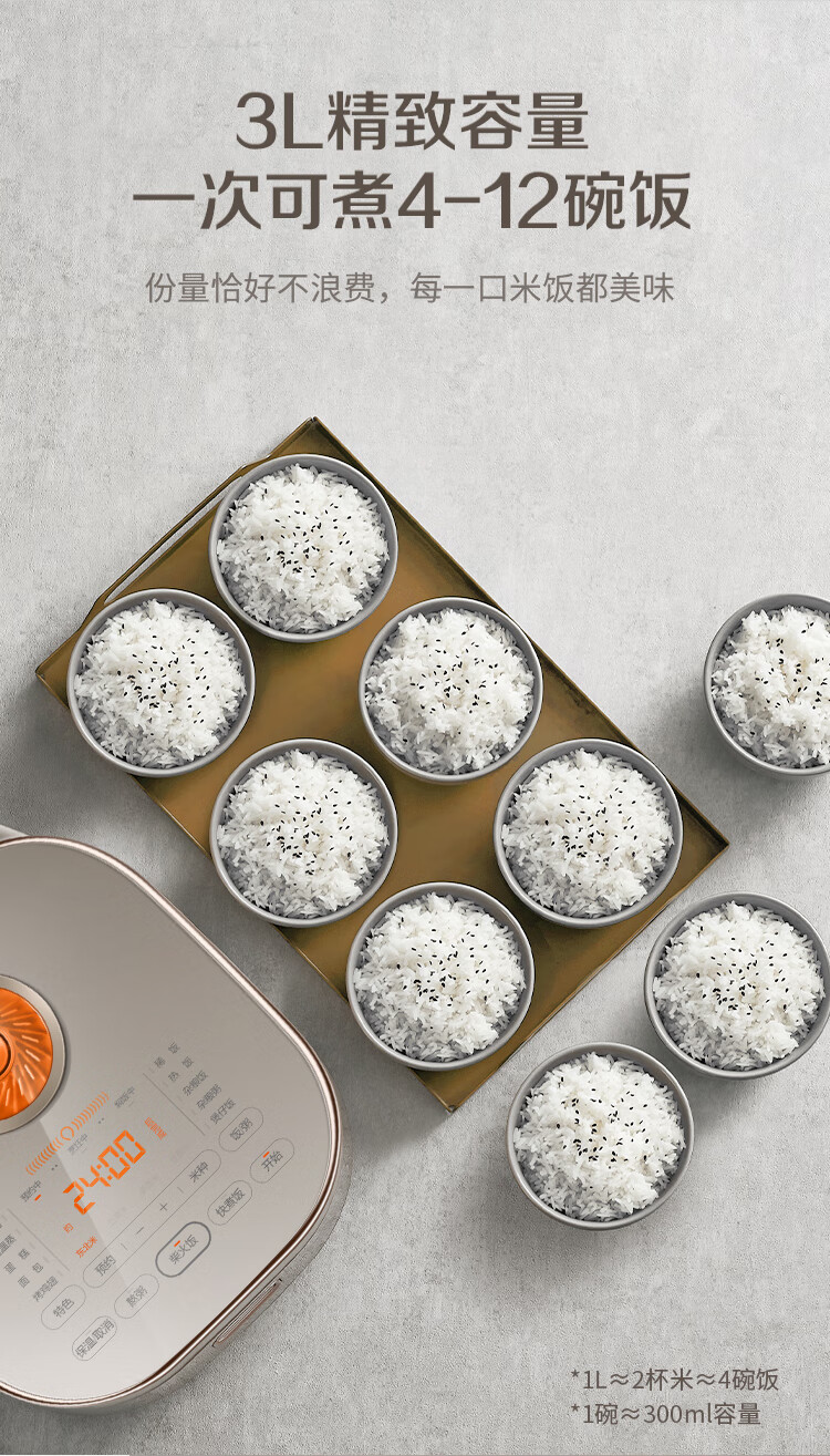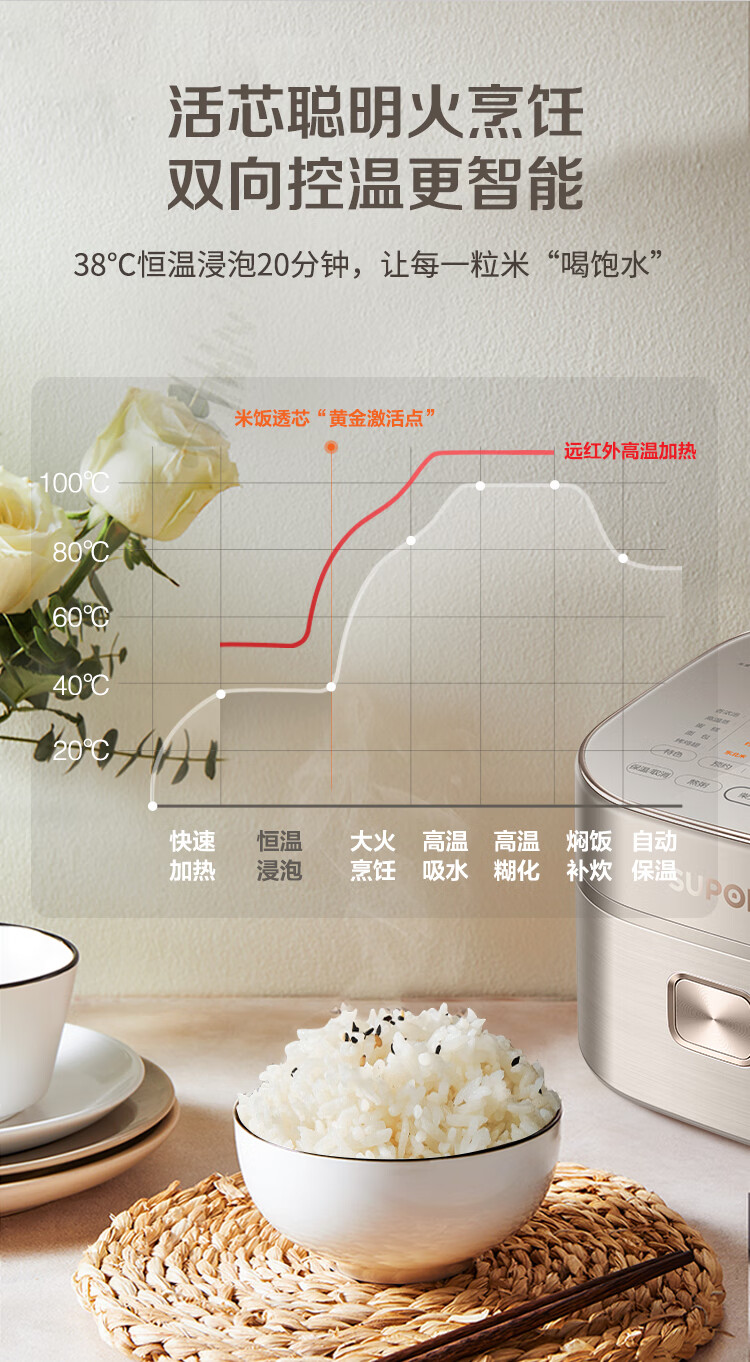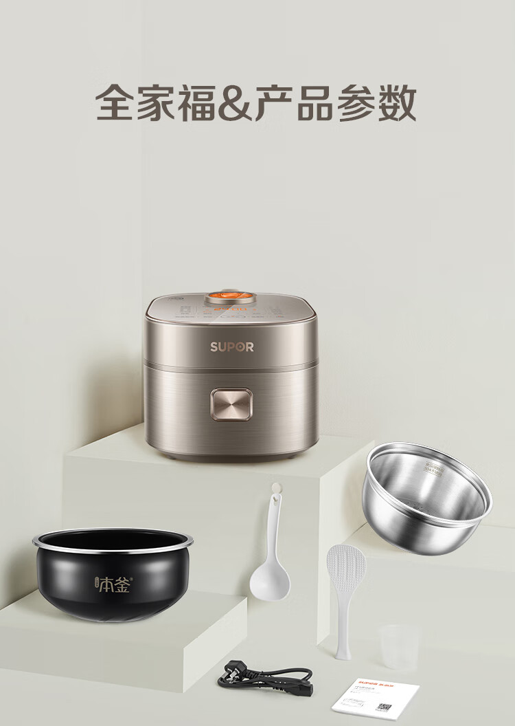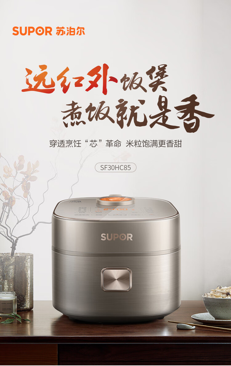 苏泊尔(SUPOR)电饭煲3L家用本釜内胆防溢沸煮IH电磁加热电饭锅SF30HC85(单位:台) 香槟金