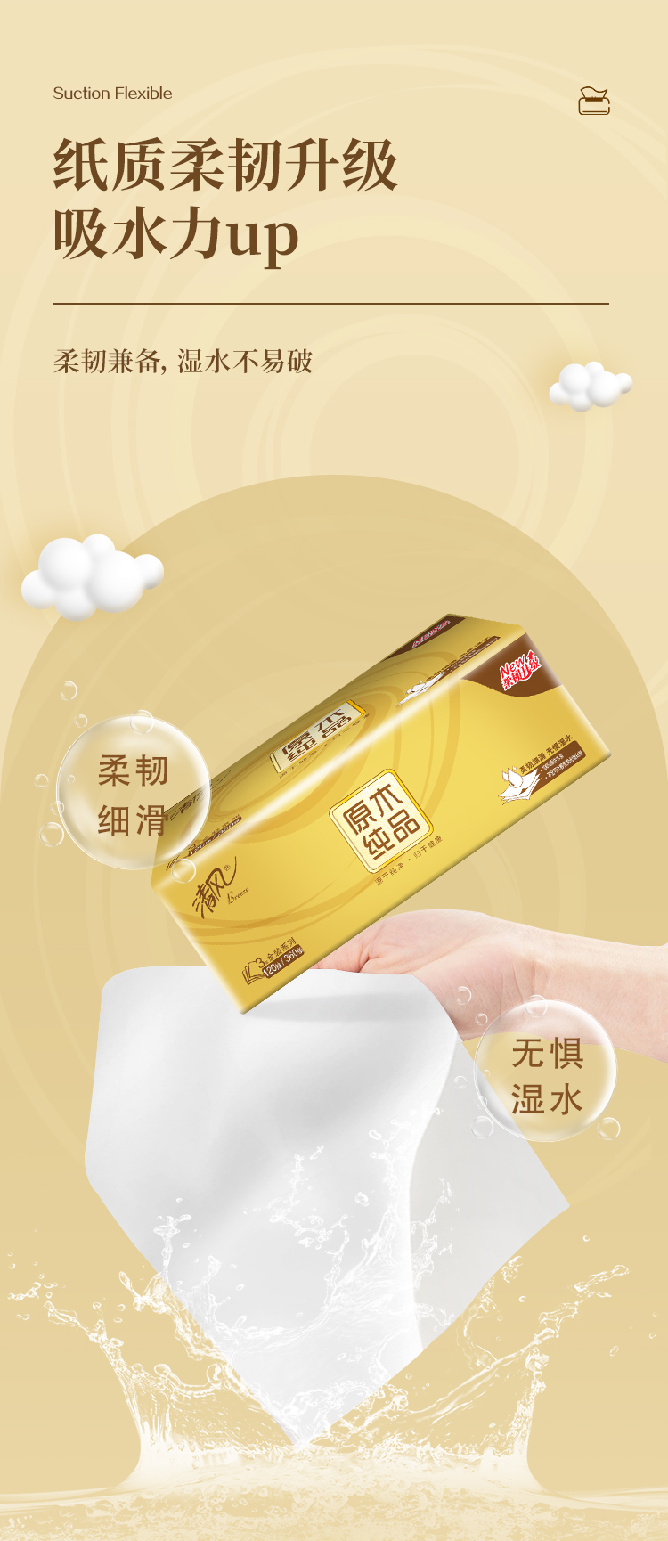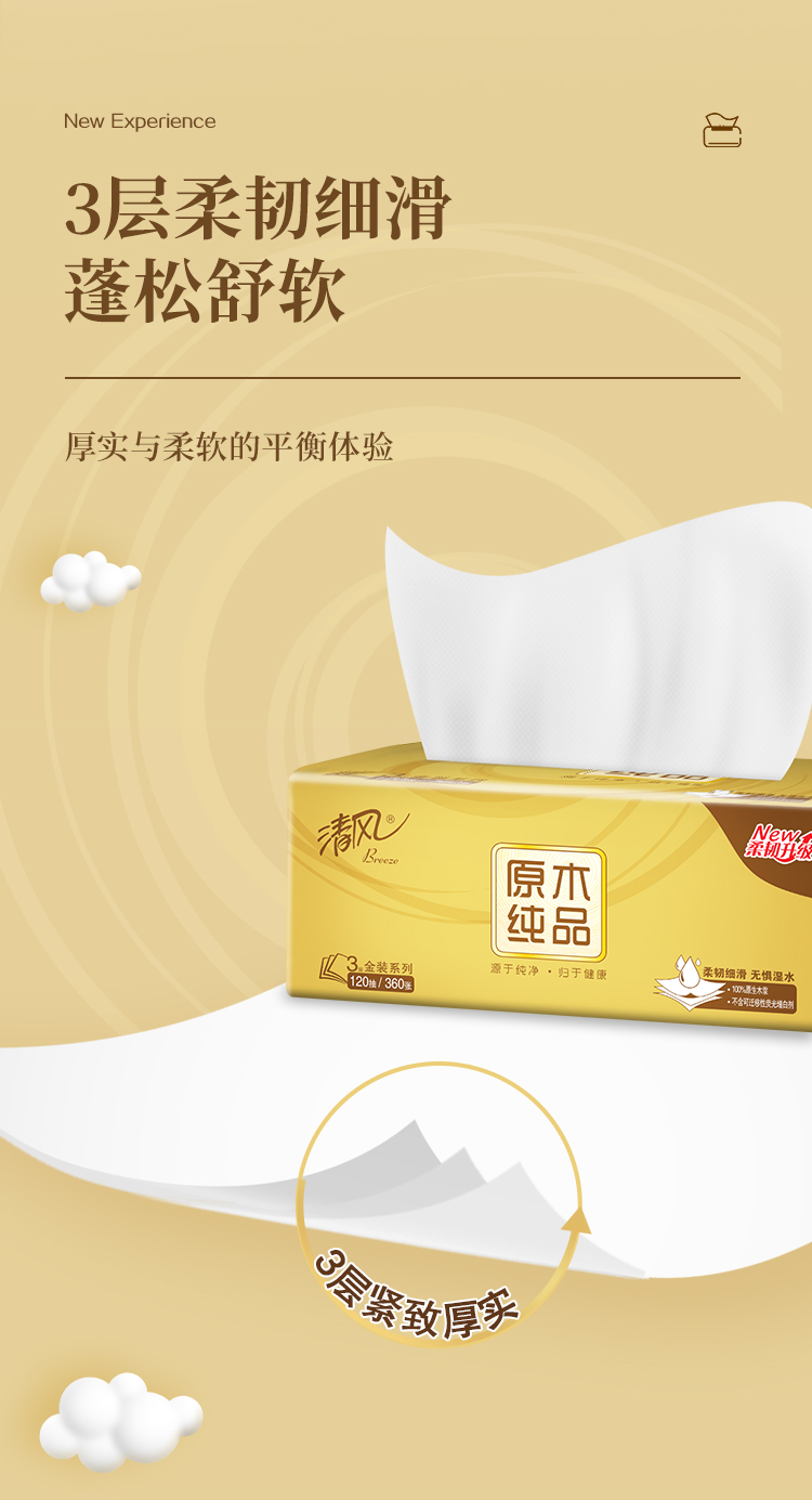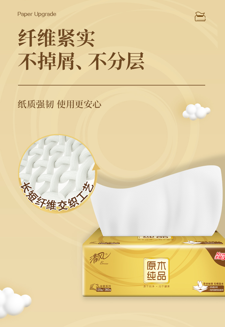 清风原木金装3层120抽24包整箱装DXTQF023 金色