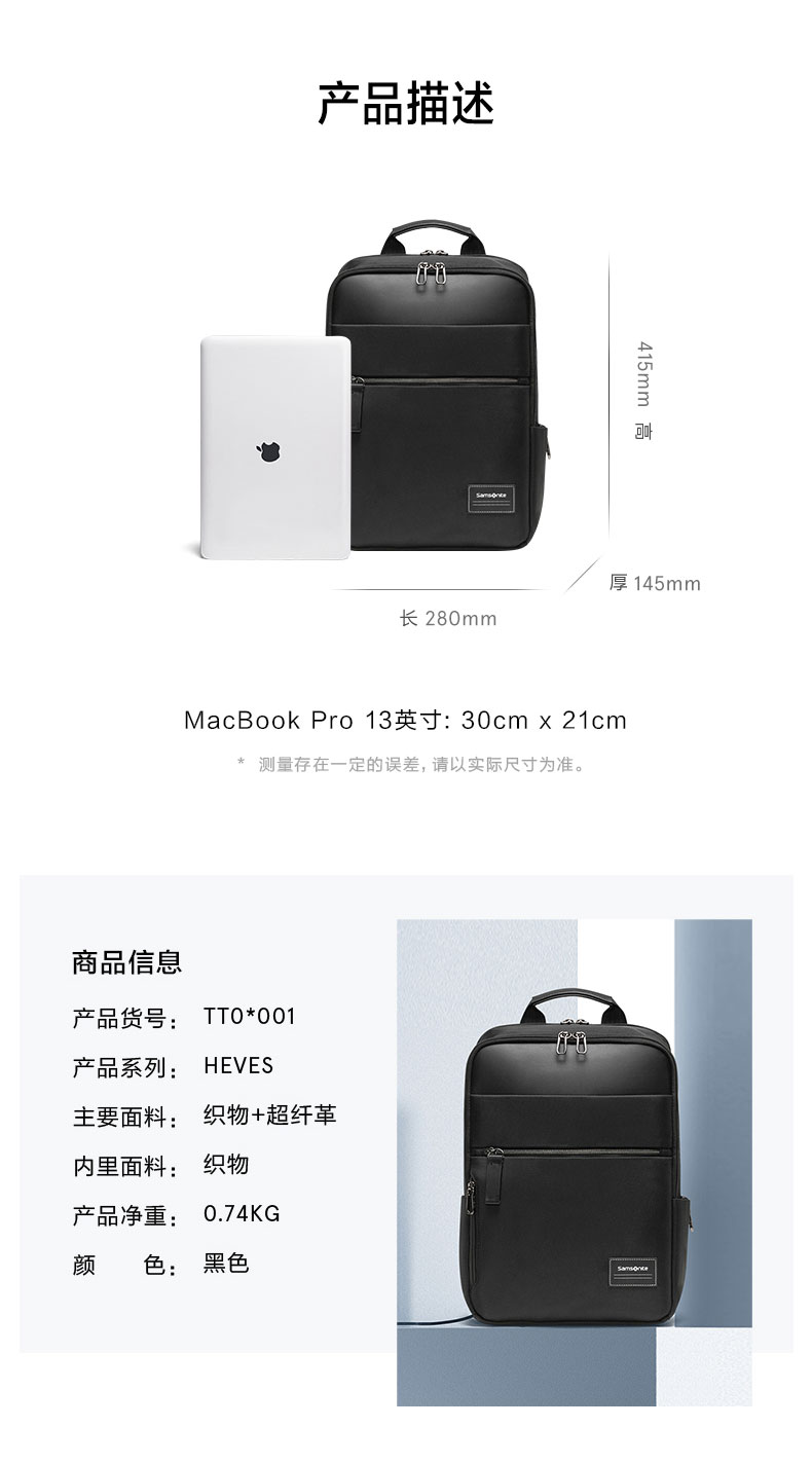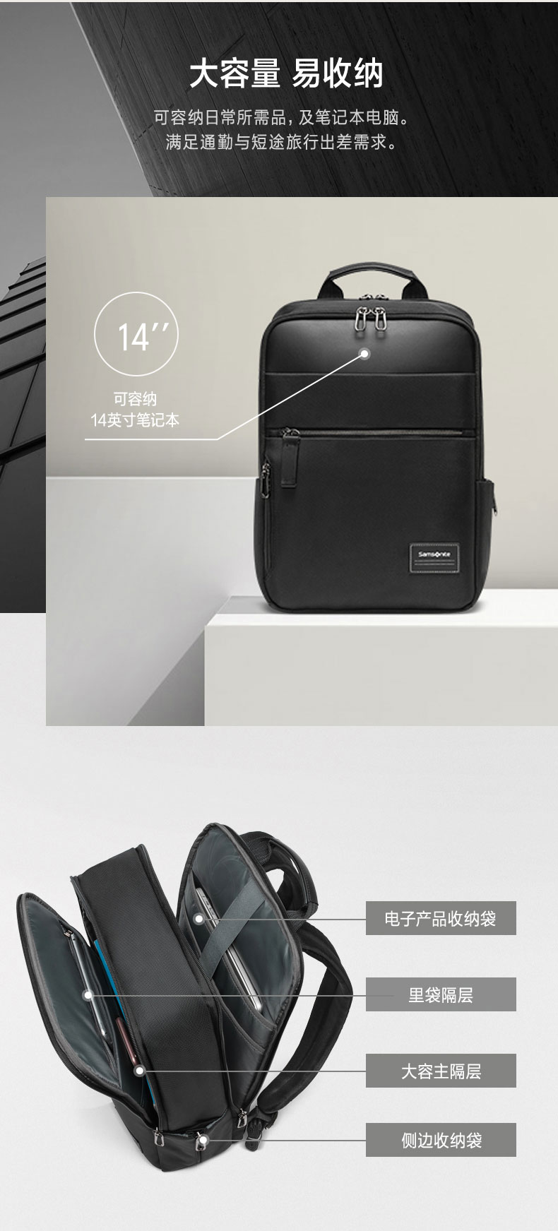 新秀丽电脑包双肩包14英寸 TT0*09001(不代发,50个起订) 黑色