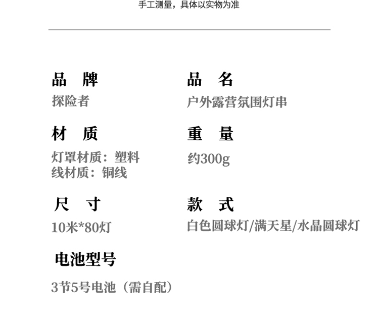探险者 TANXIANZHE 户外露营帐篷灯氛围灯挂式营地装饰灯串野营灯LED照明灯 小灯串-电池款 白色