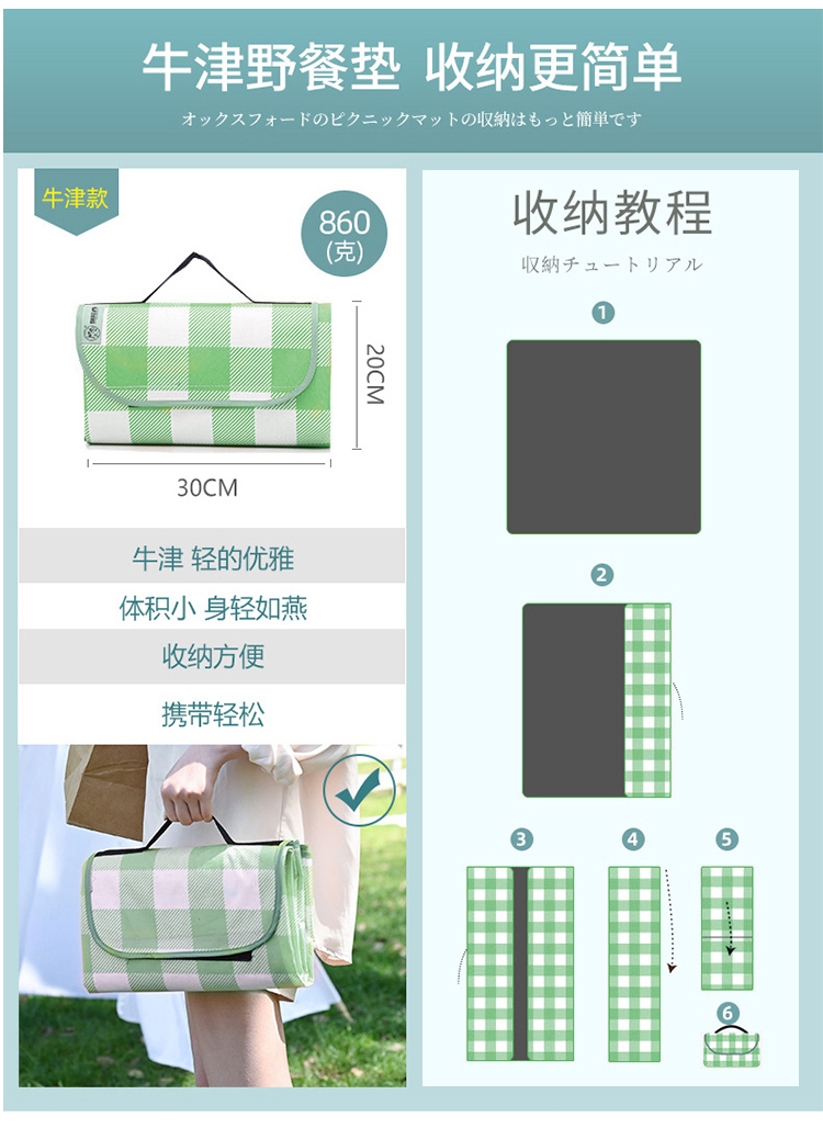 探险者 TAN XIAN ZHE 野餐垫户外加厚便携防潮垫耐磨牛津布大尺寸帐篷垫子沙滩垫 浅杉绿
